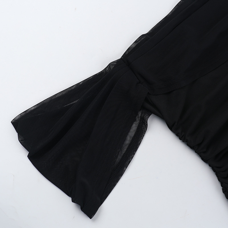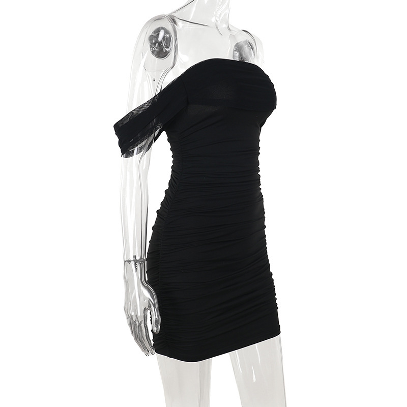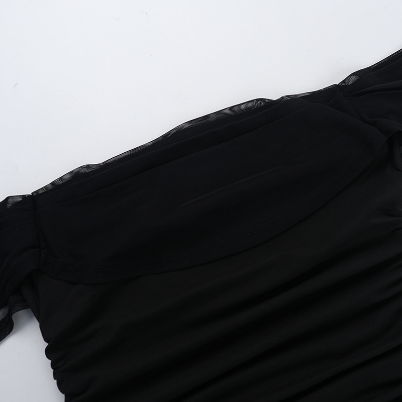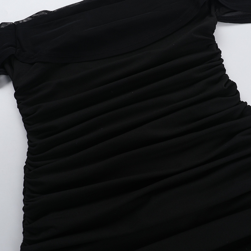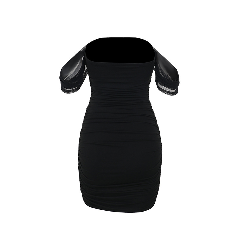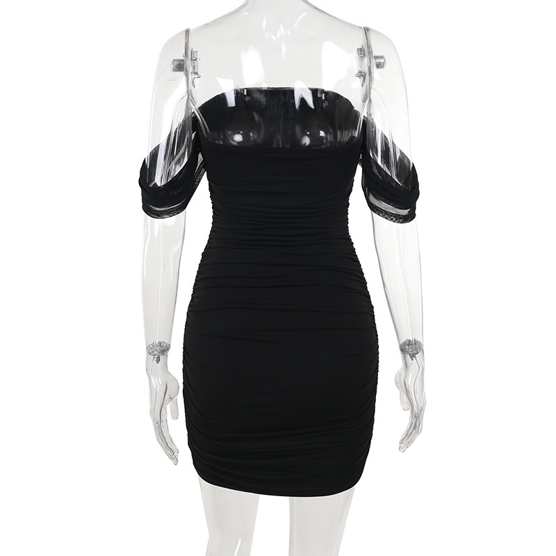 0 Review for Ruched Mesh Spliced Off-the-Shoulder Dress