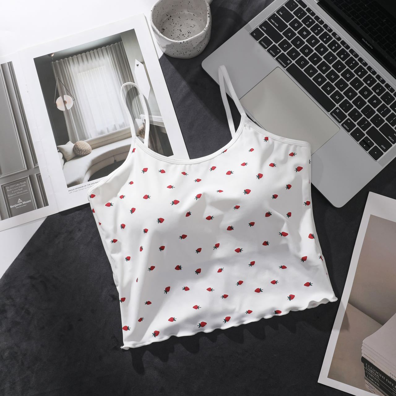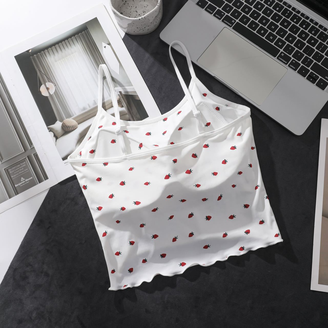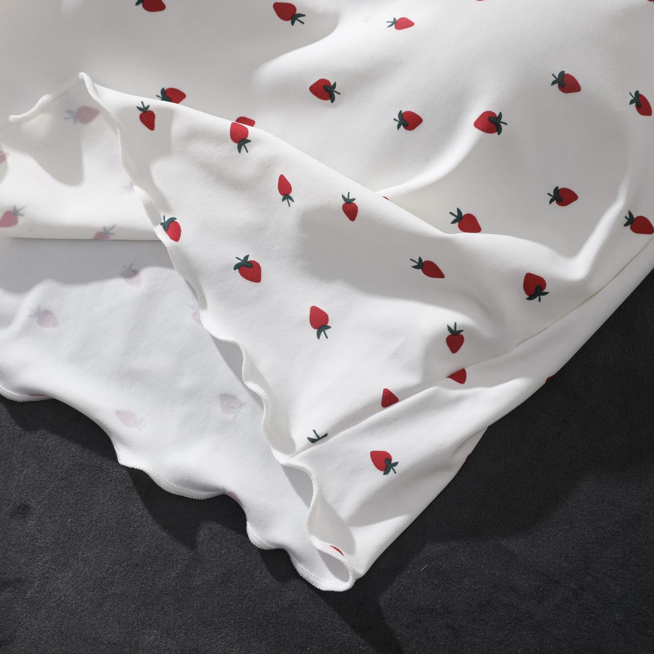 Ruffle-edged Outerwear Top With Built-in Chest Pads And A Strawberry Print