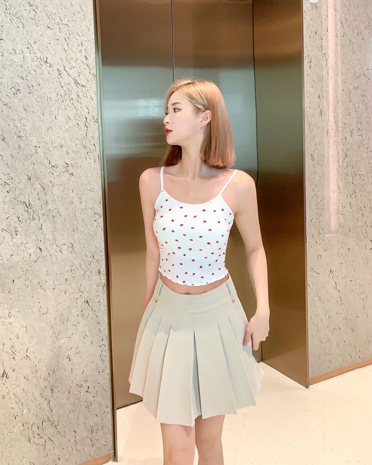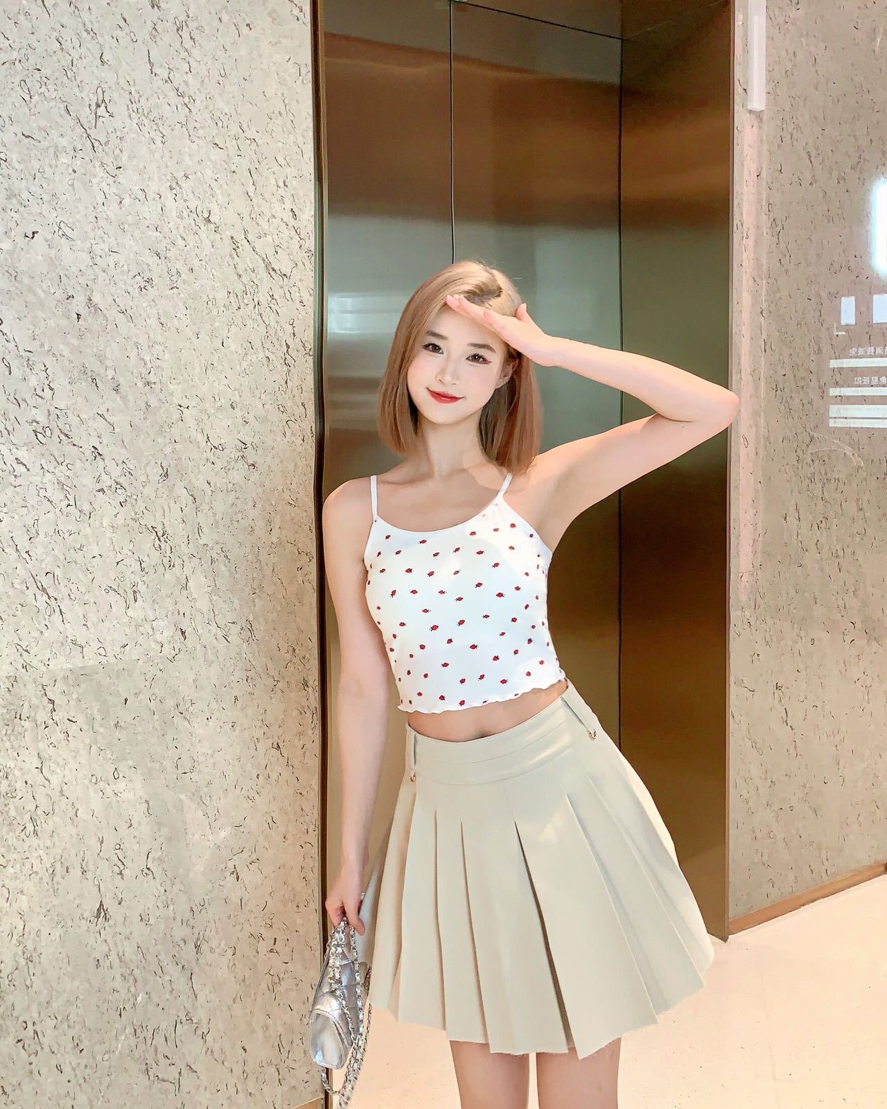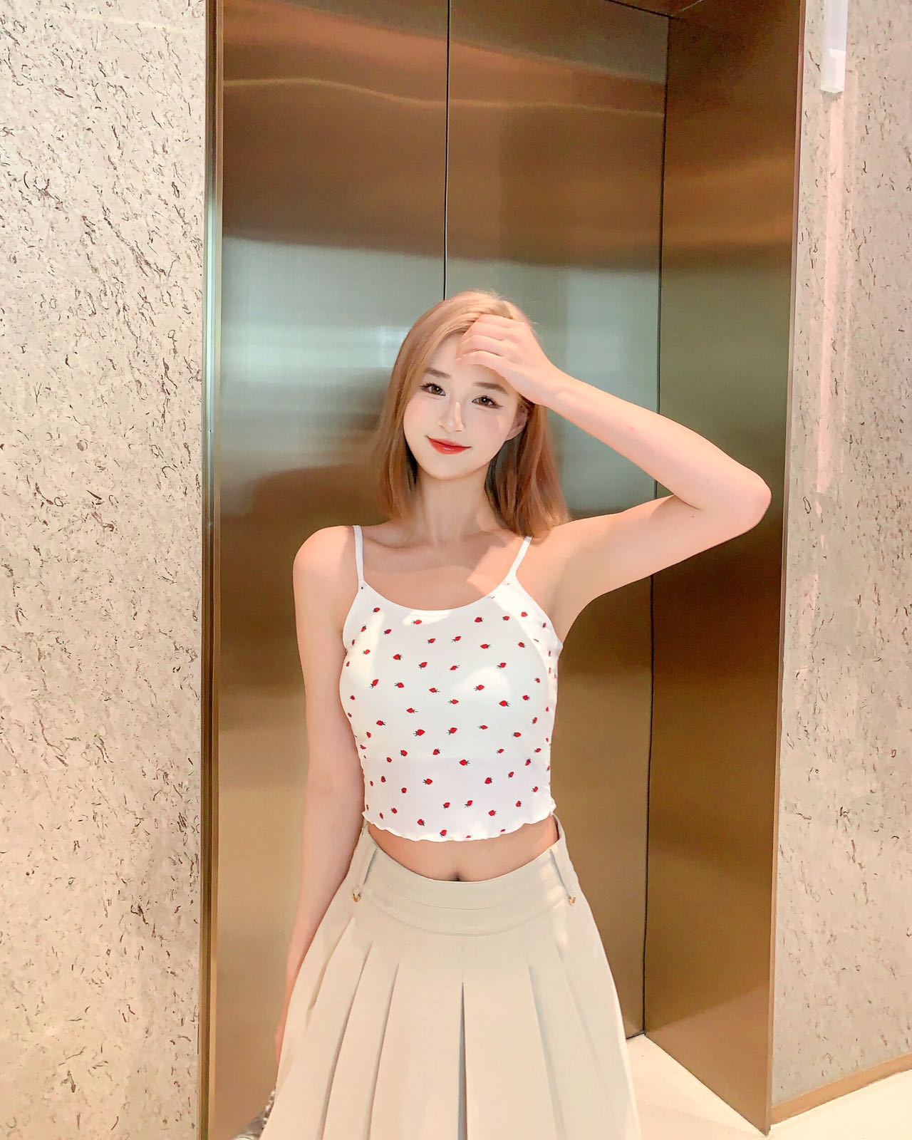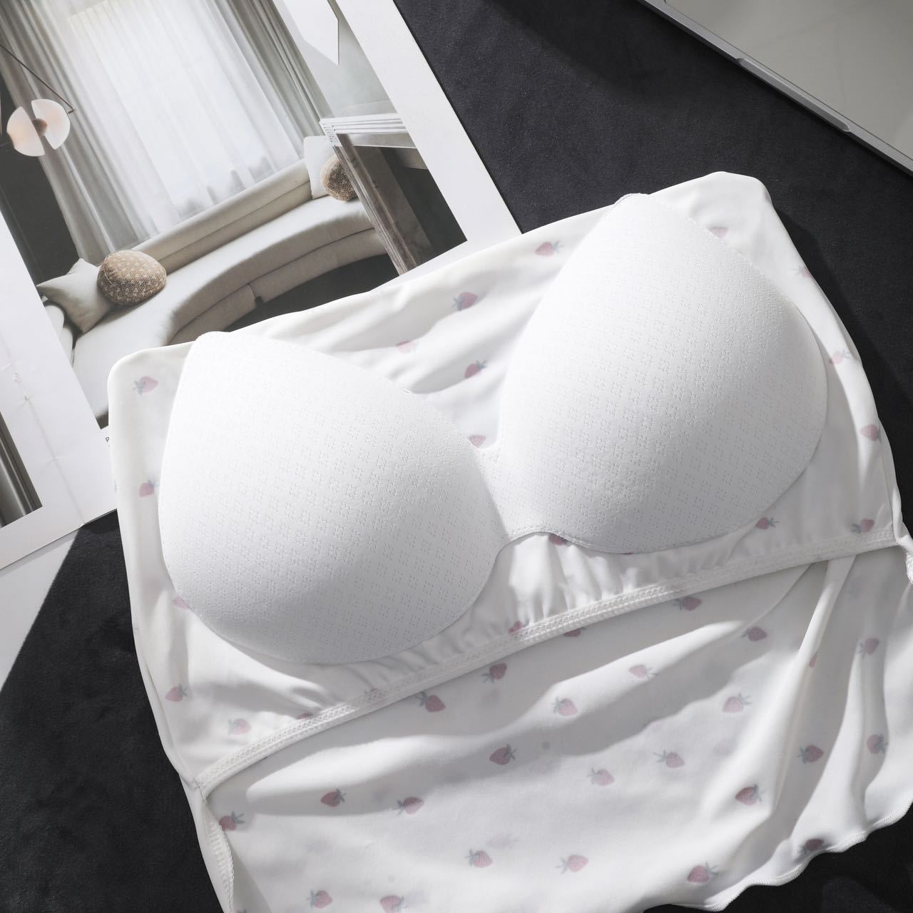Ruffle-edged Outerwear Top With Built-in Chest Pads And A Strawberry Print