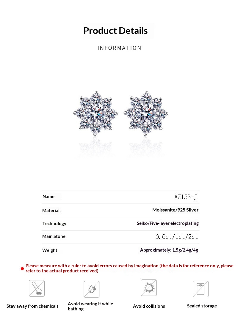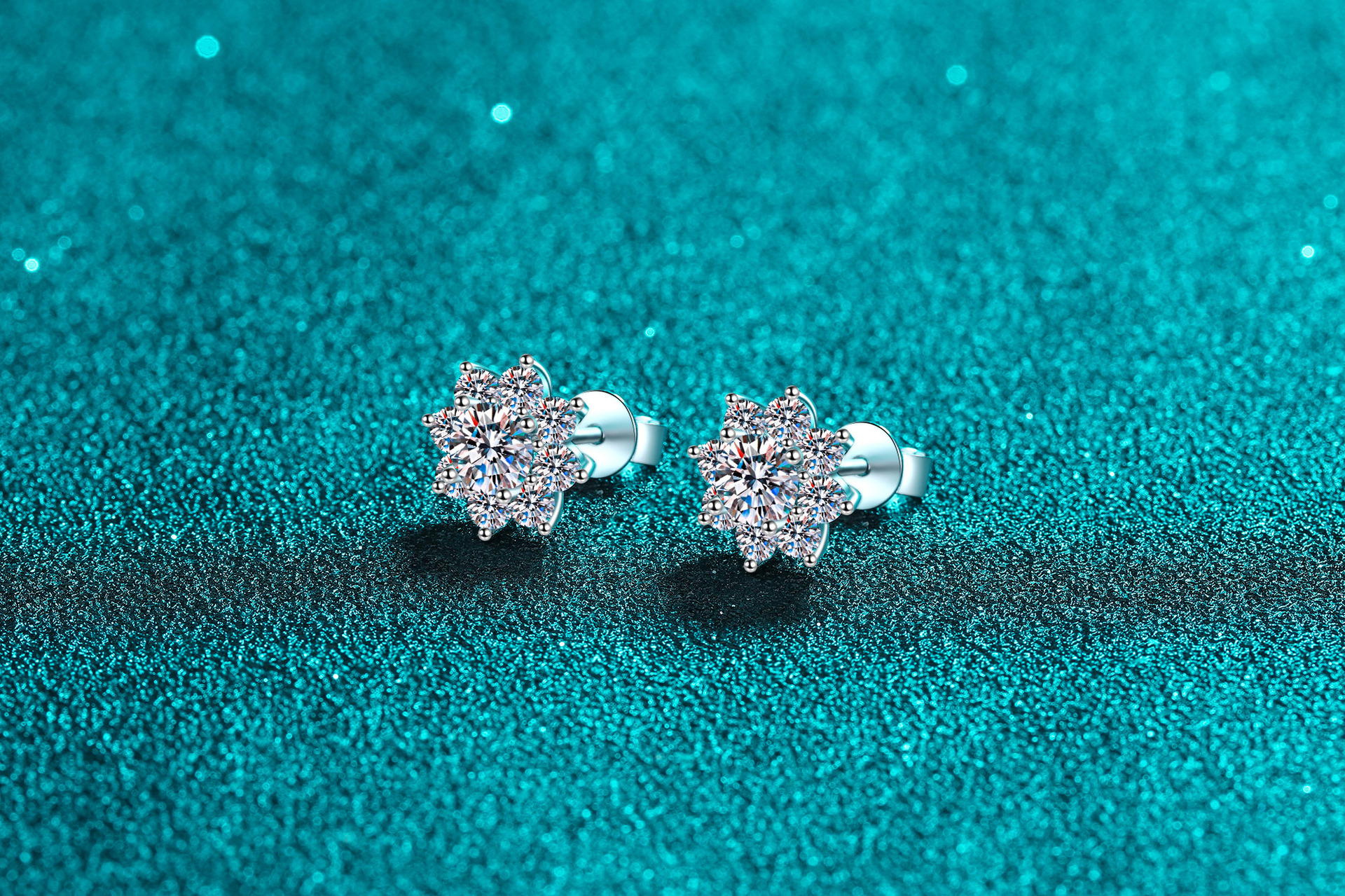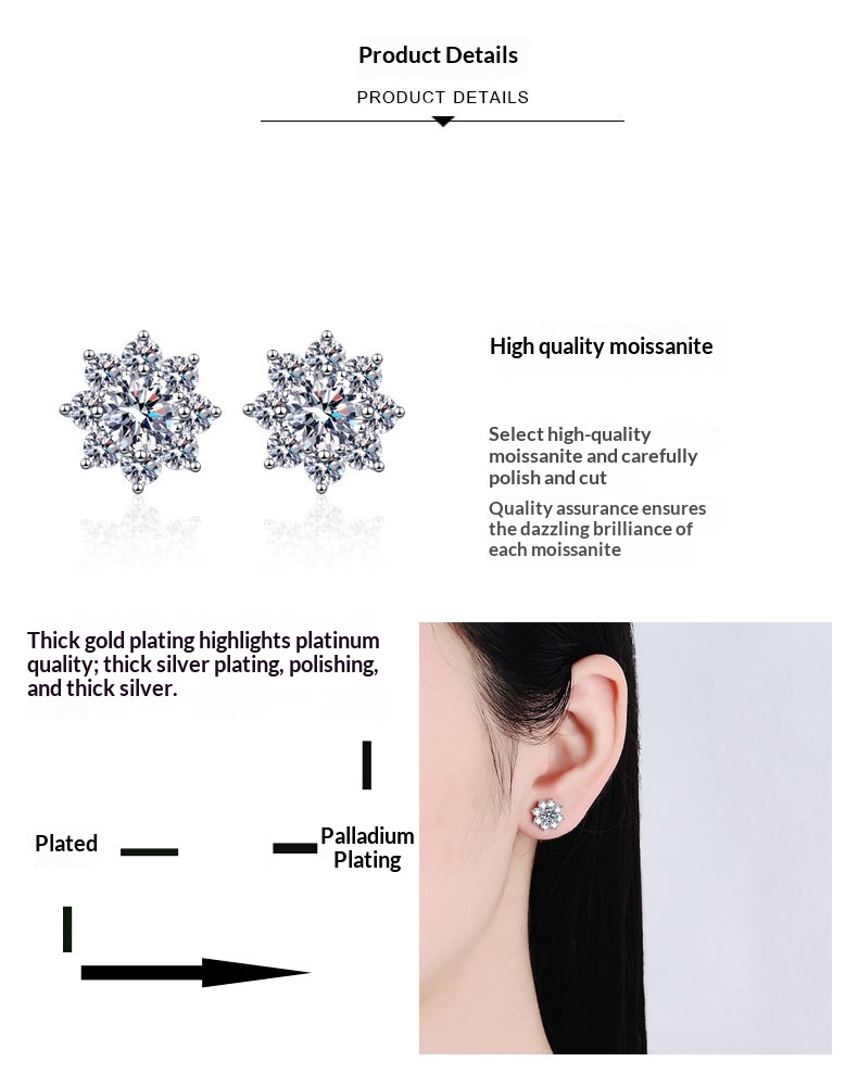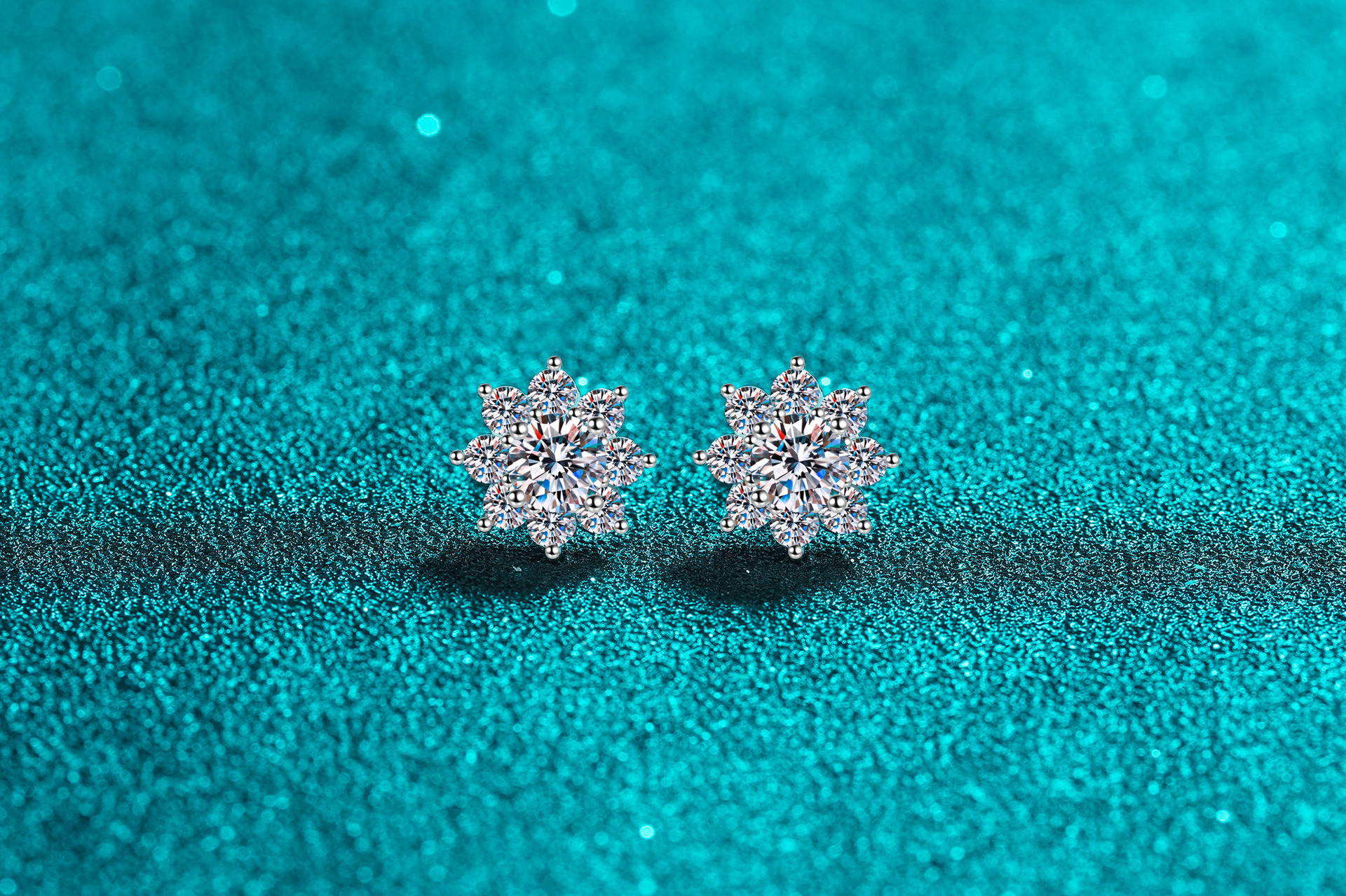 S925 Sterling Silver Snowflake Stud Earrings For Women With Moissanite