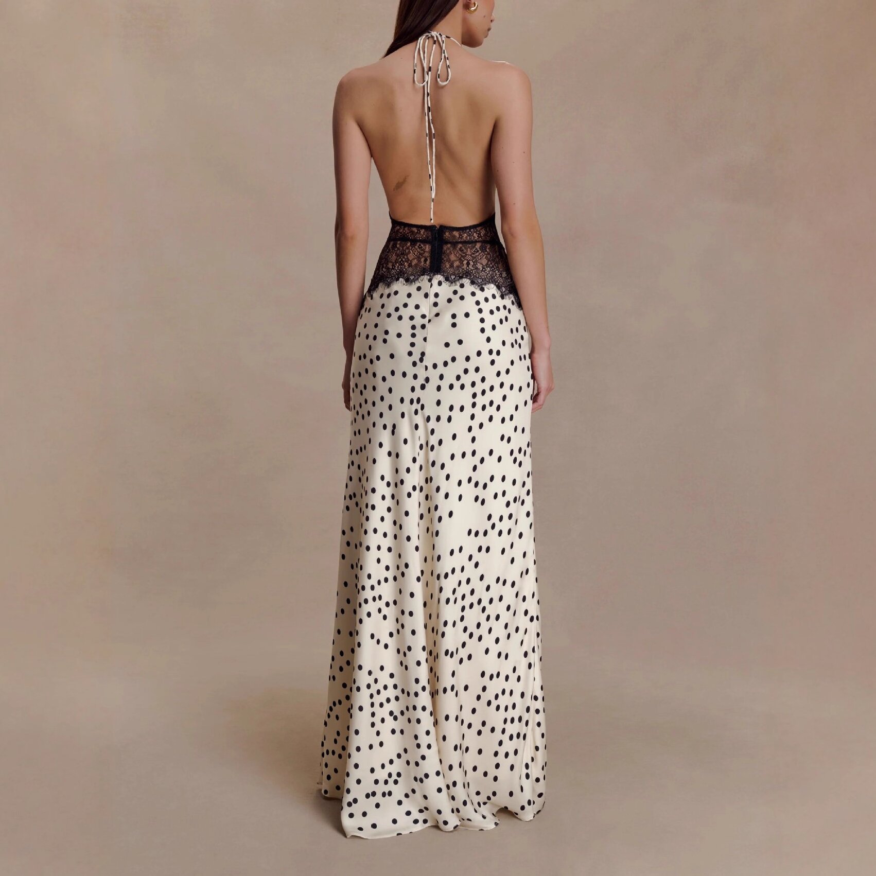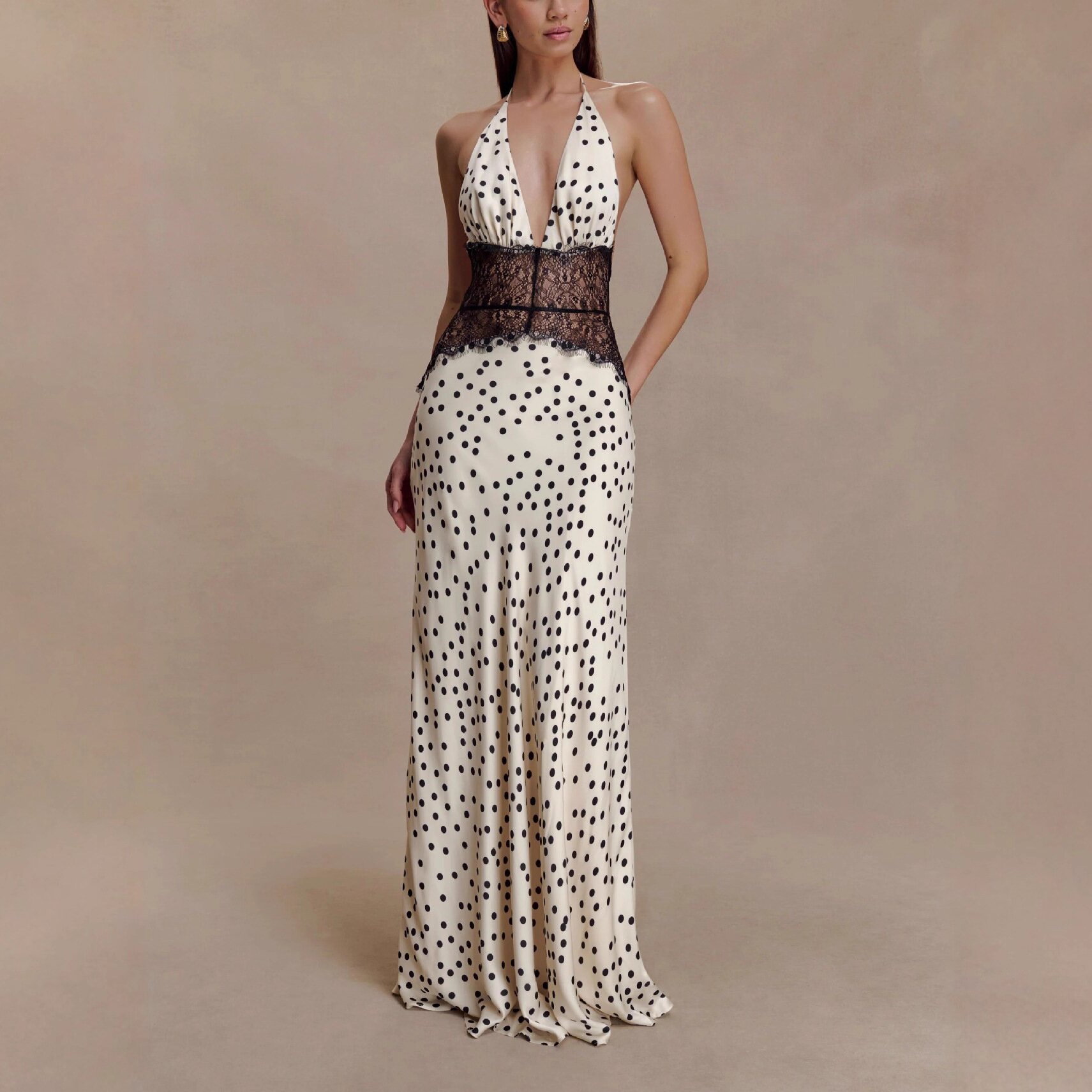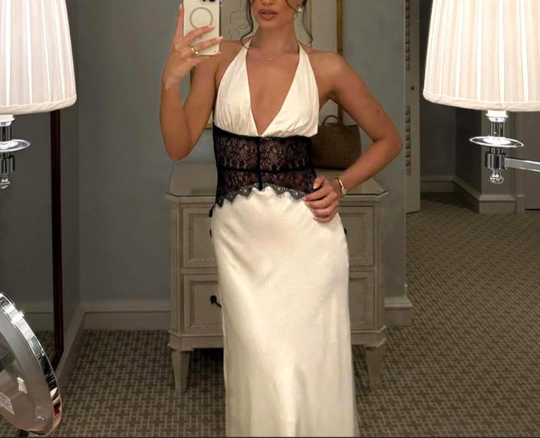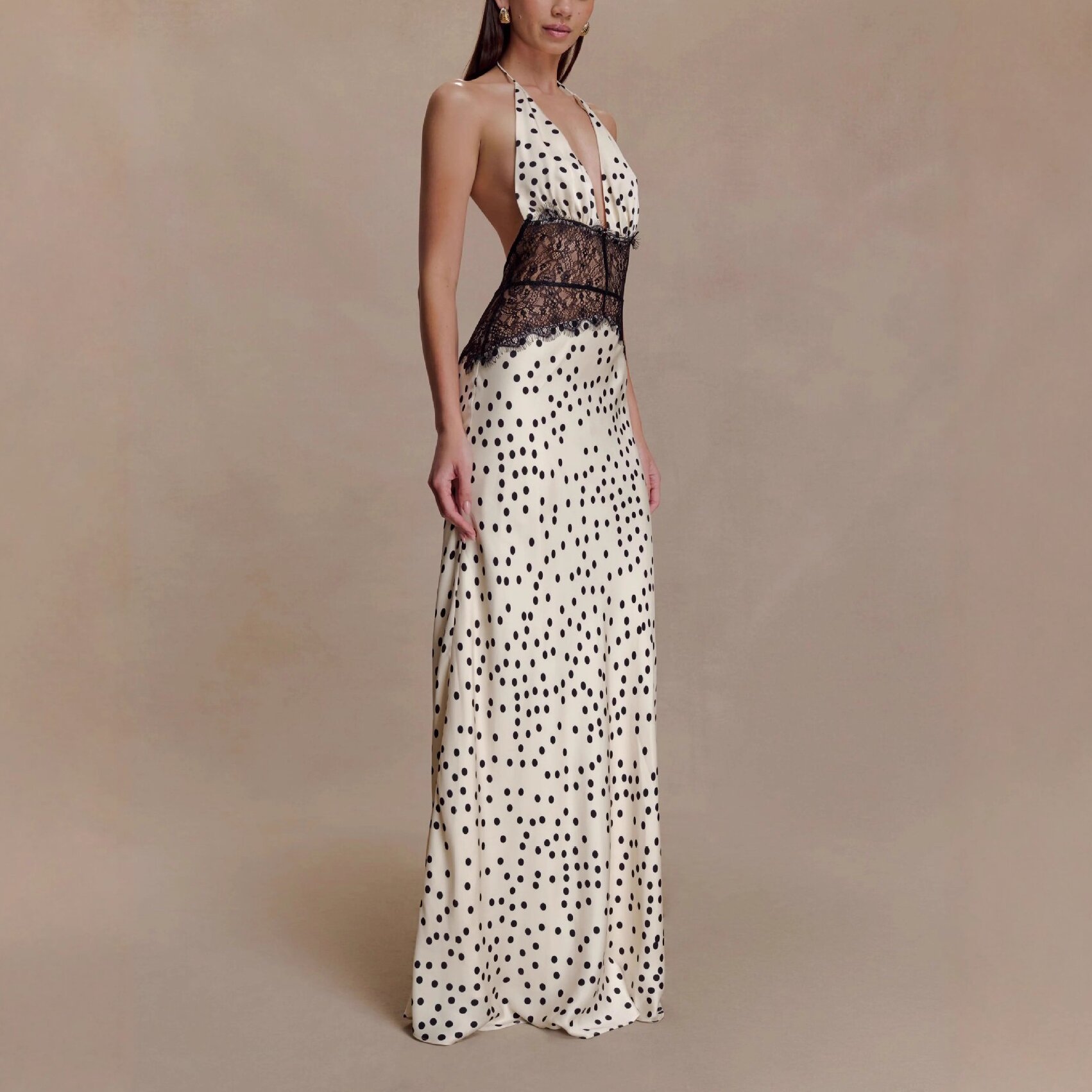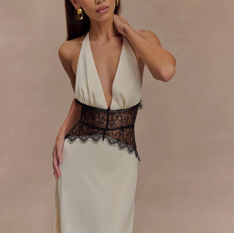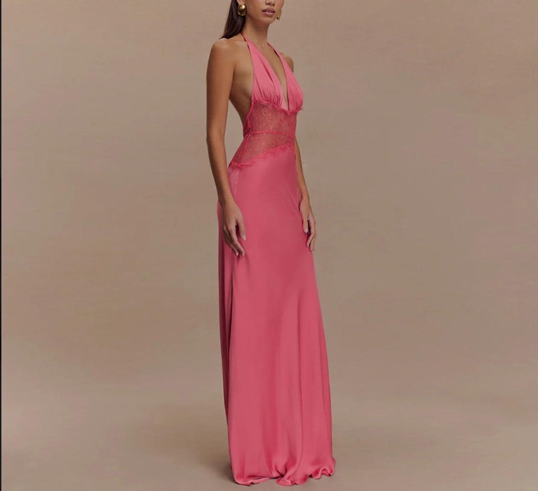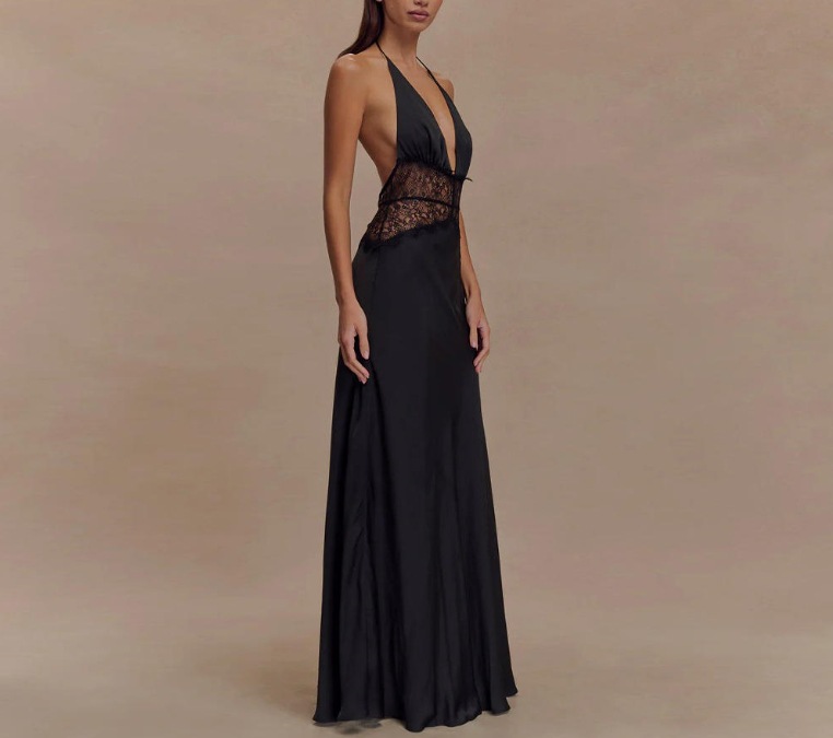 Seamless Halter Deep V-Slit Silk-Smooth Satin Maxi Dress