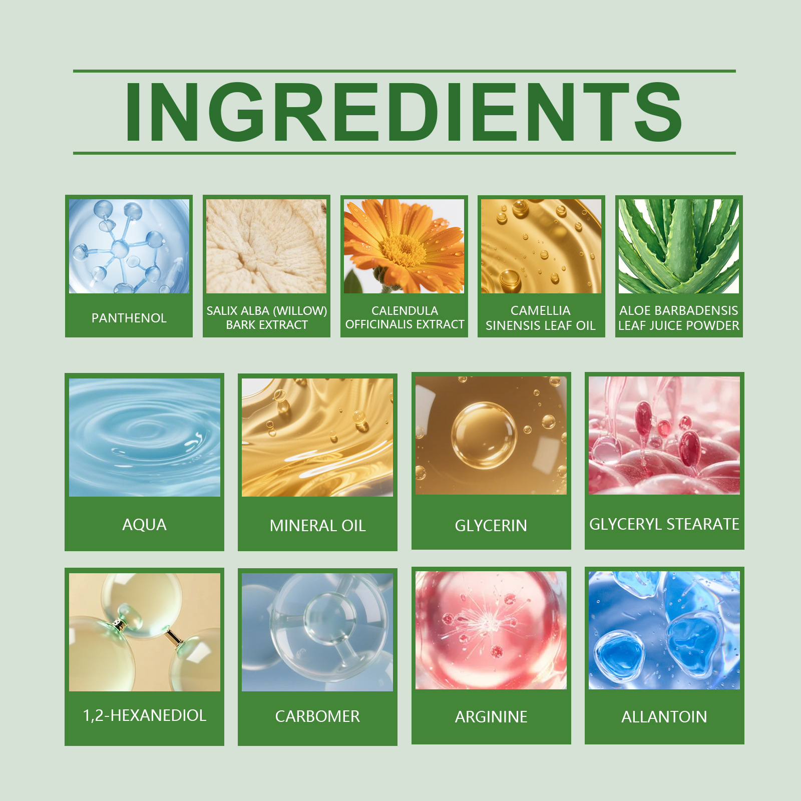 Active ingredients: panthenol, white willow bark extract, calendula extract, tea oil, aloe vera leaf juice powder.