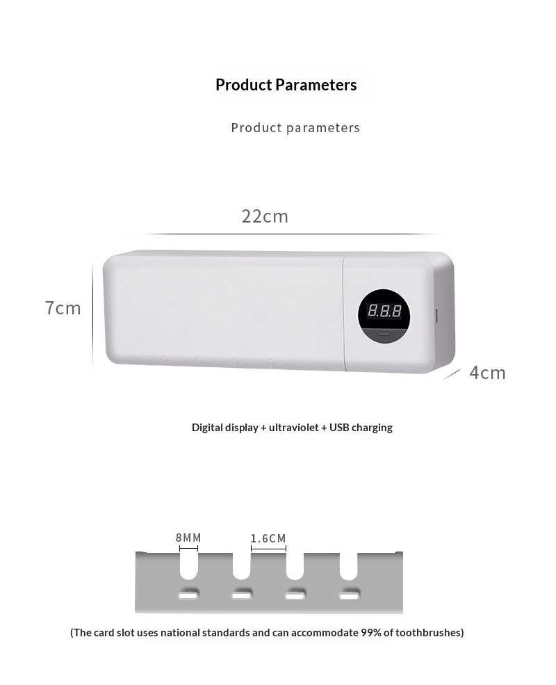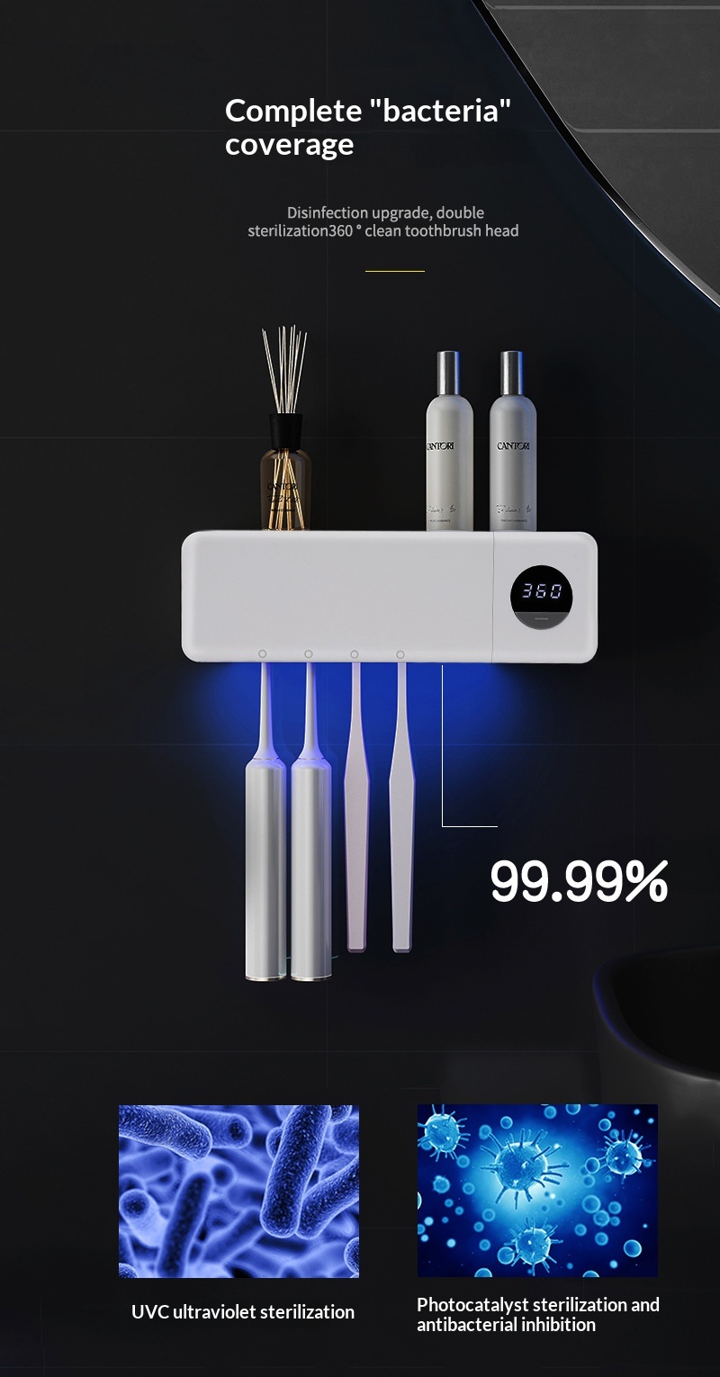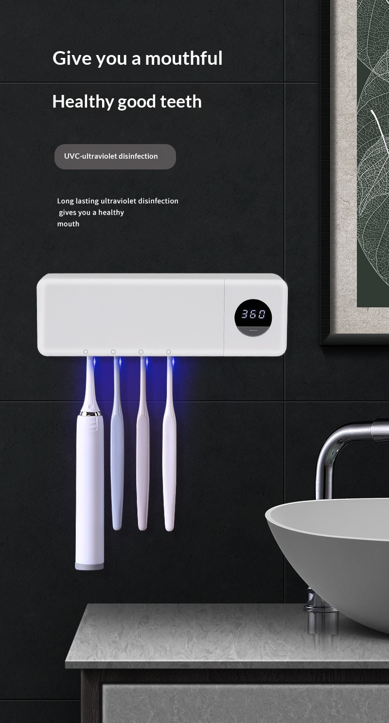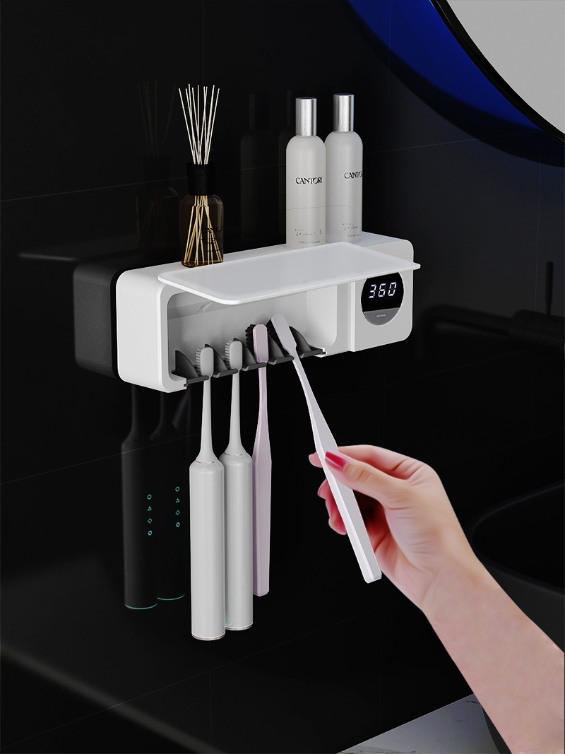 Smart Digital Display Home Storage Rack For The Bathroom USB-Charged UV Sterilizing Toothbrush Disinfector