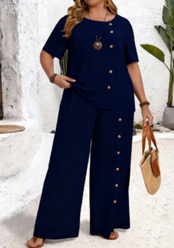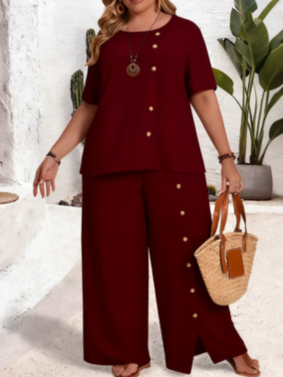 0 Review for Solid-color Button-up Casual Loose-fit Set