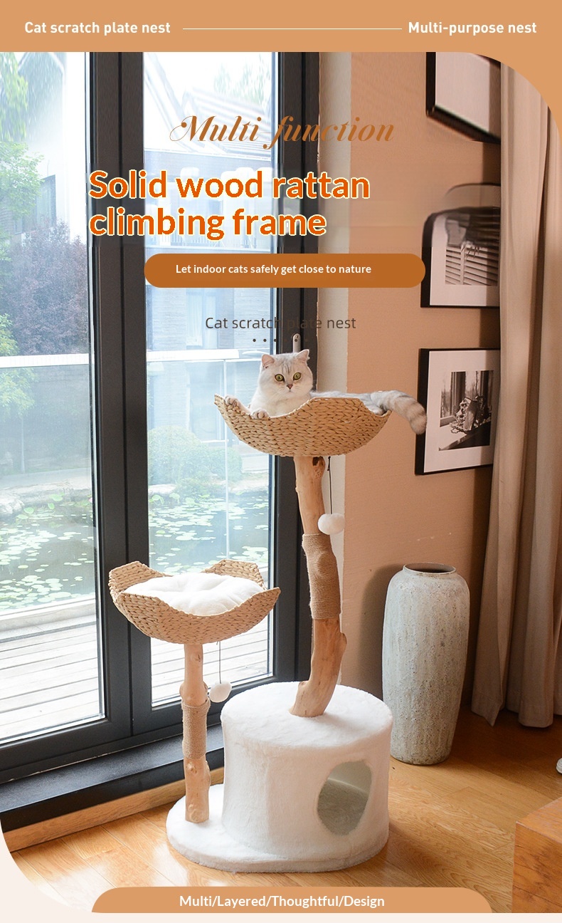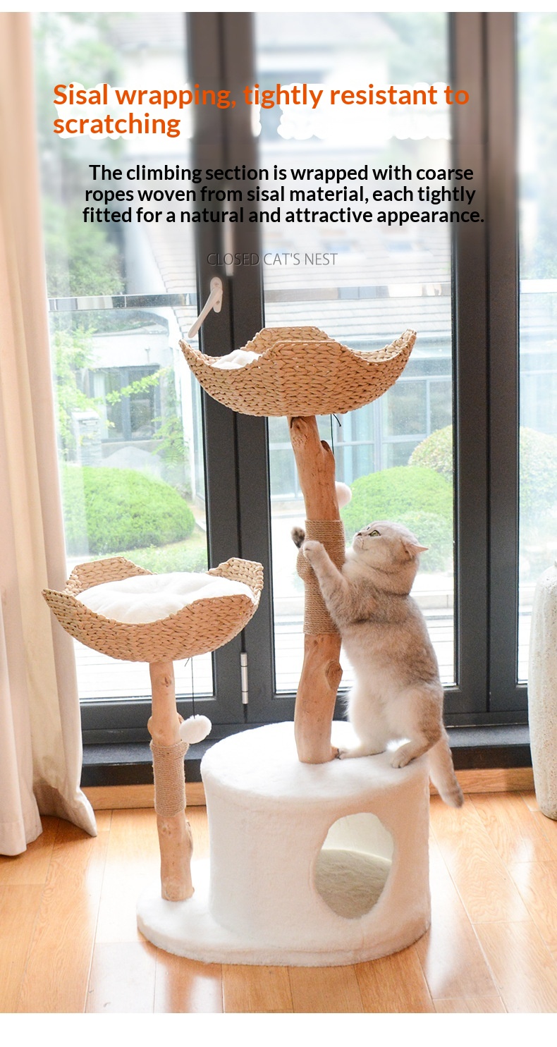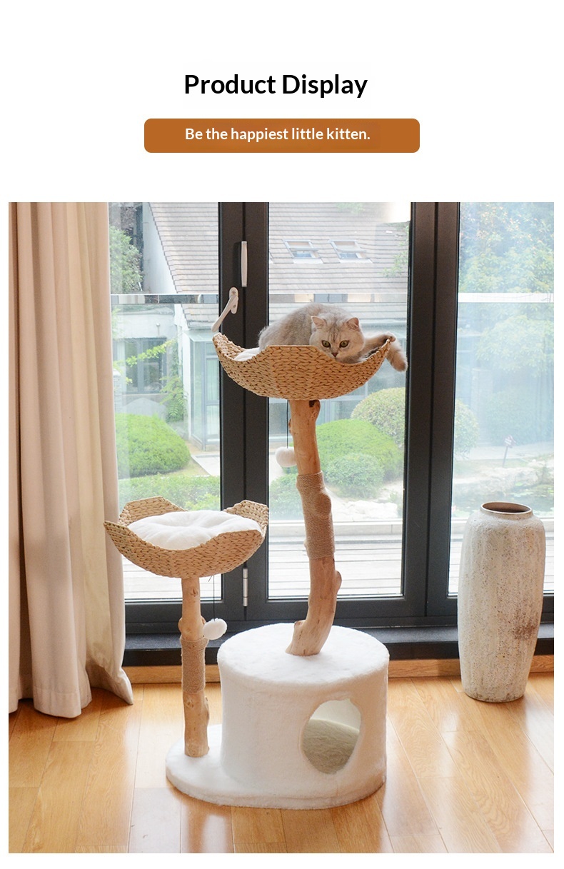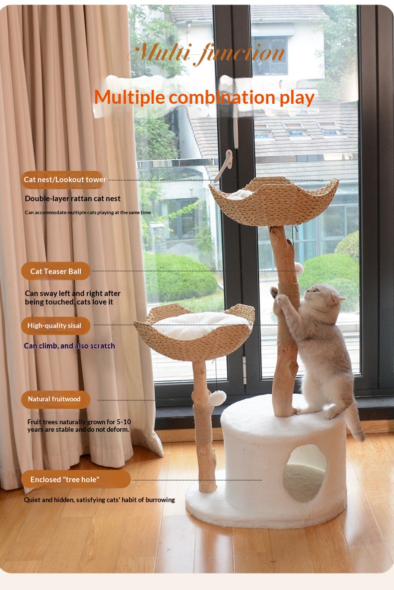Color: Natural Wood Solid Wood Cat Tree with Small Nest [45*58*89cm], Double-Layer Nest-Style Cat Tree [60*45*119cm]