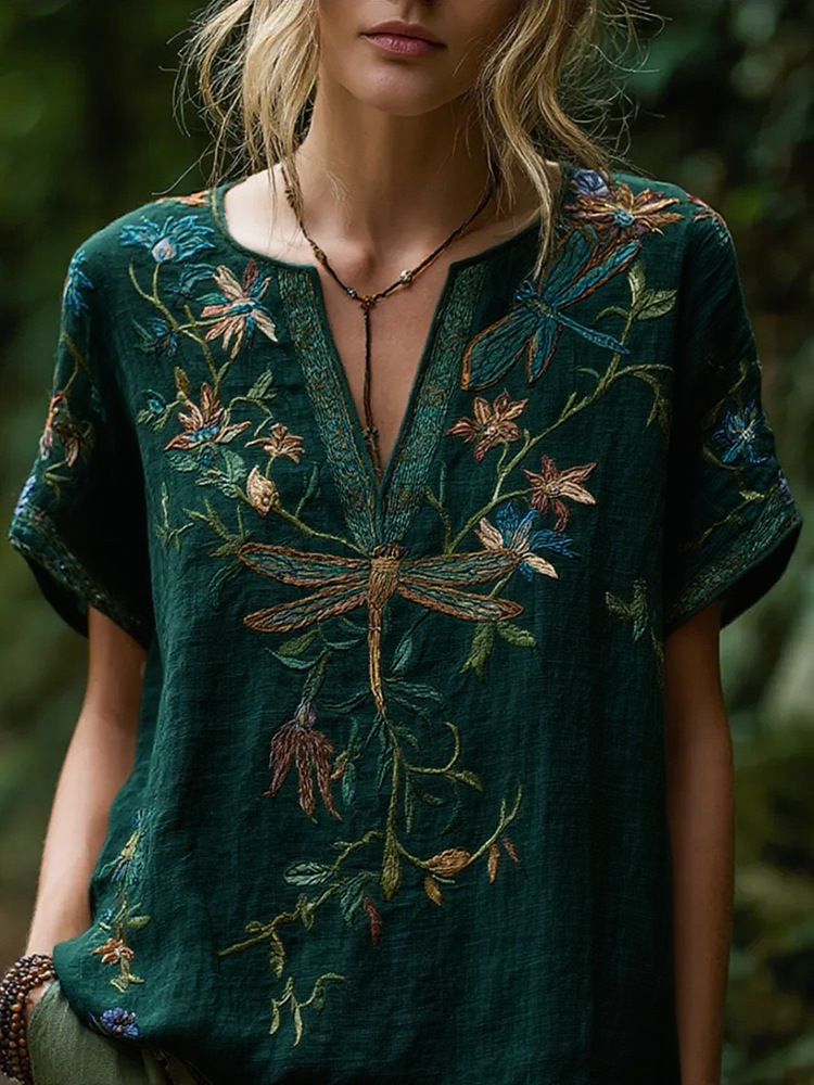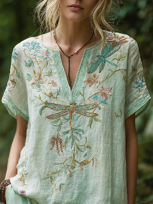 Spring Fashion Carnival Trendy Printed Womens V-Neck Short-Sleeve Top
