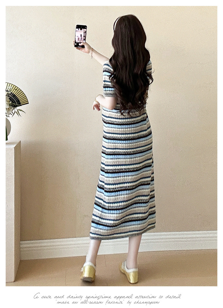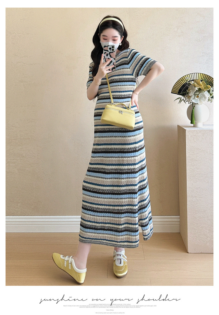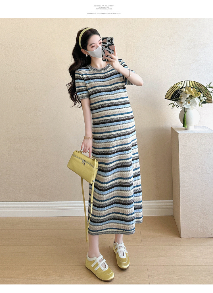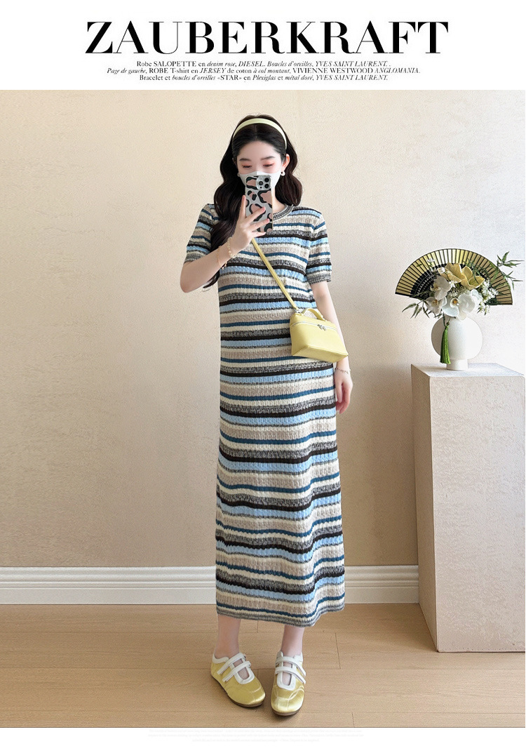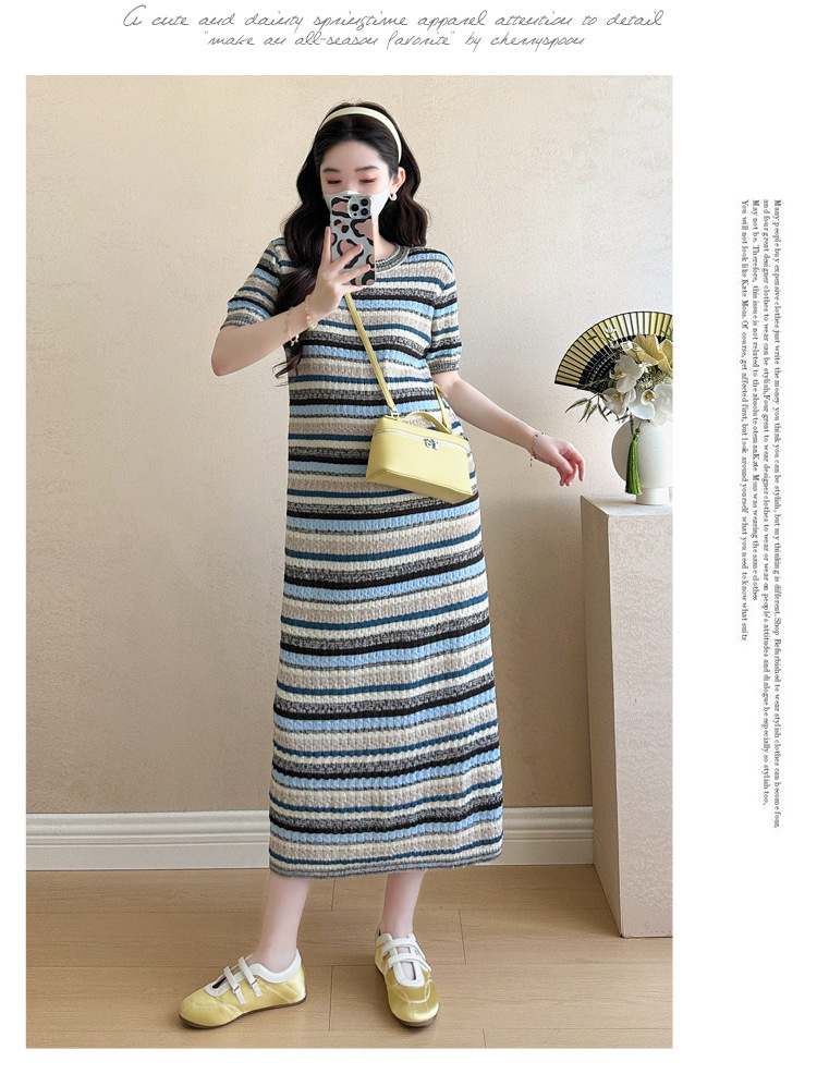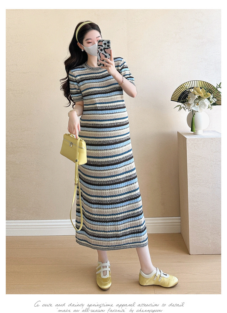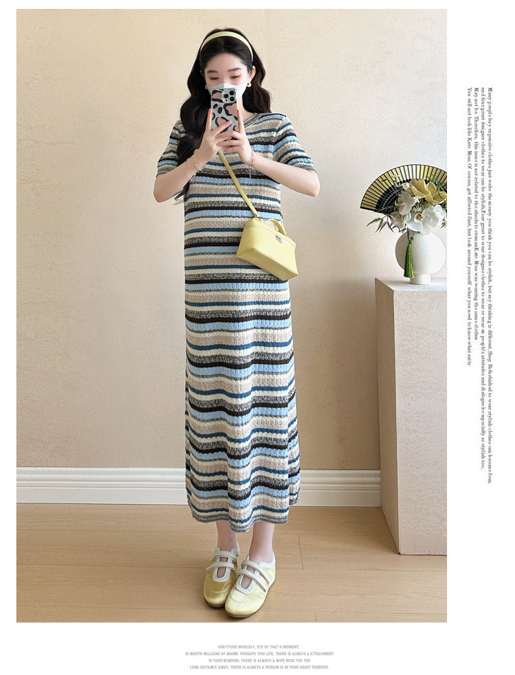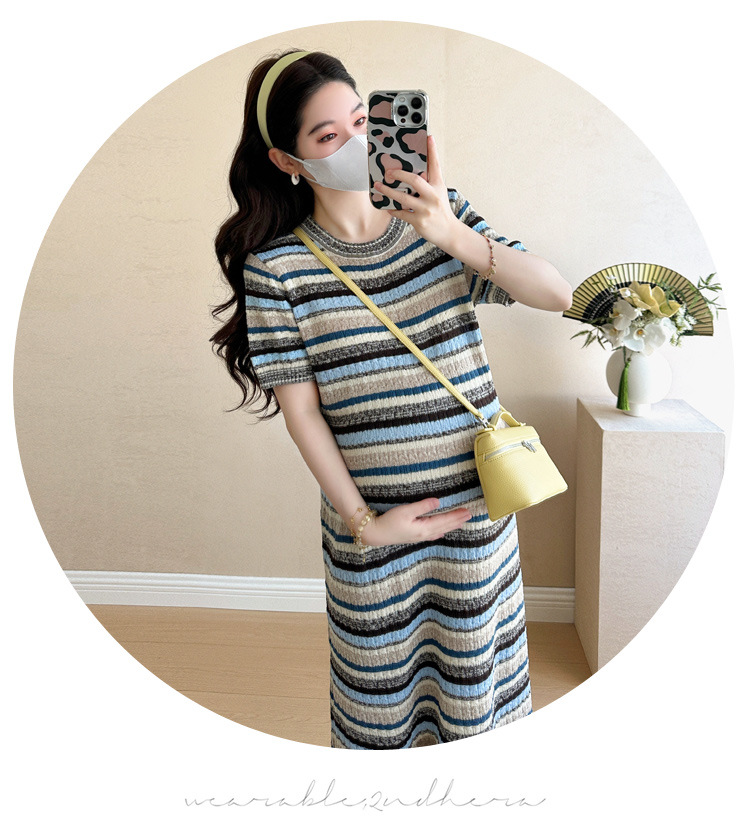 0 Review for Striped Color-Block Crew-Neck Short-Sleeve Maternity Dress