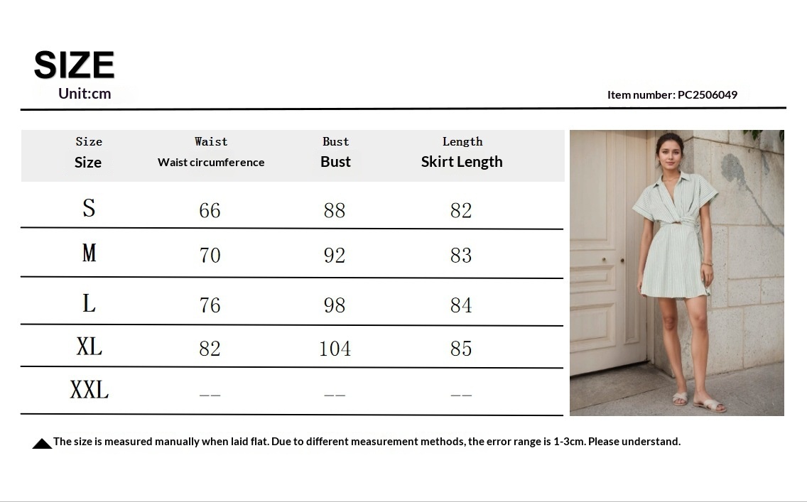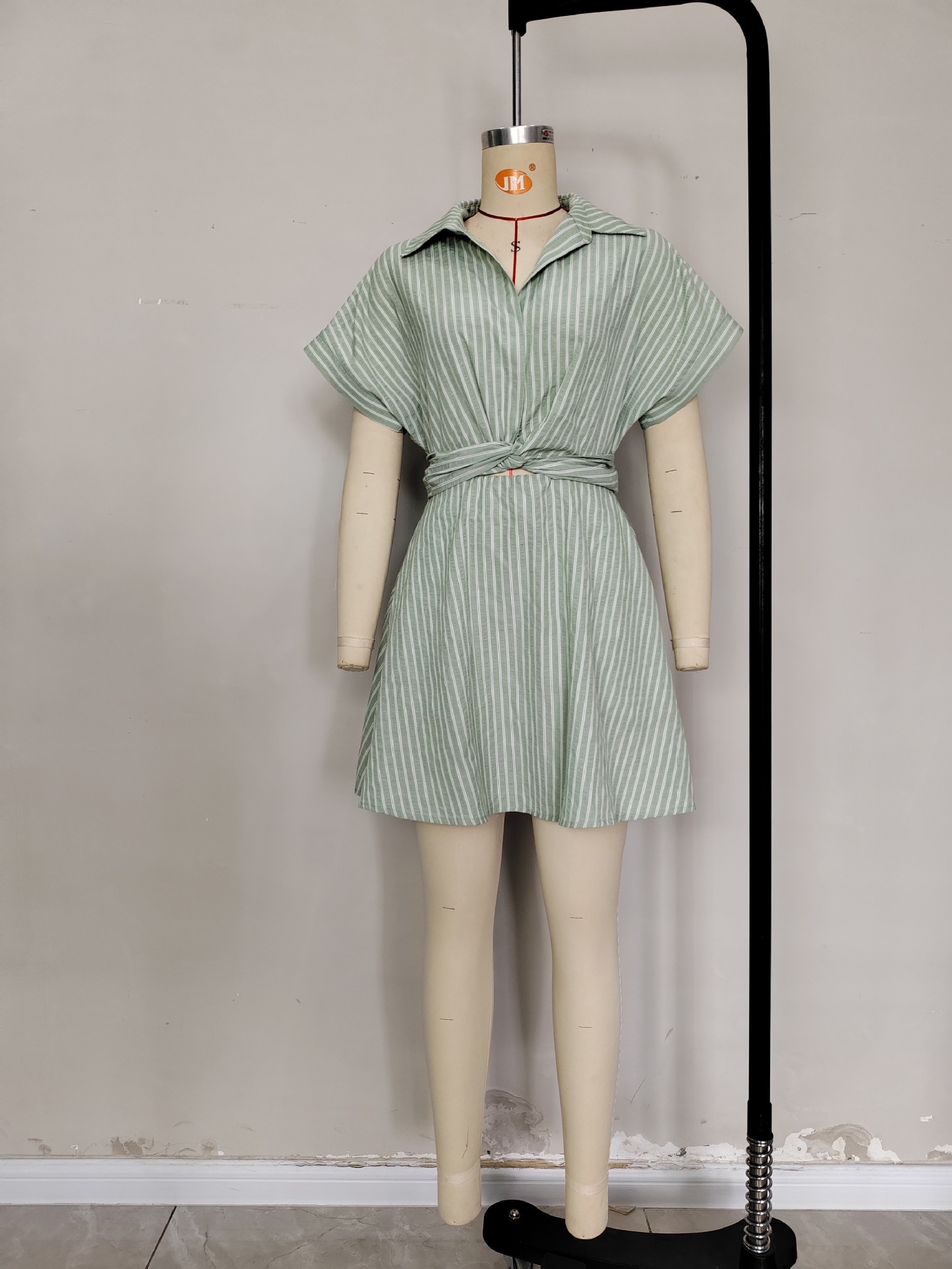 0 Review for Striped Lace-Up Lapel Casual Short-Sleeve Dress