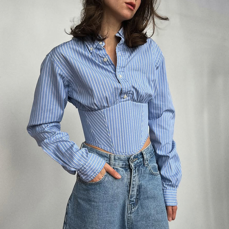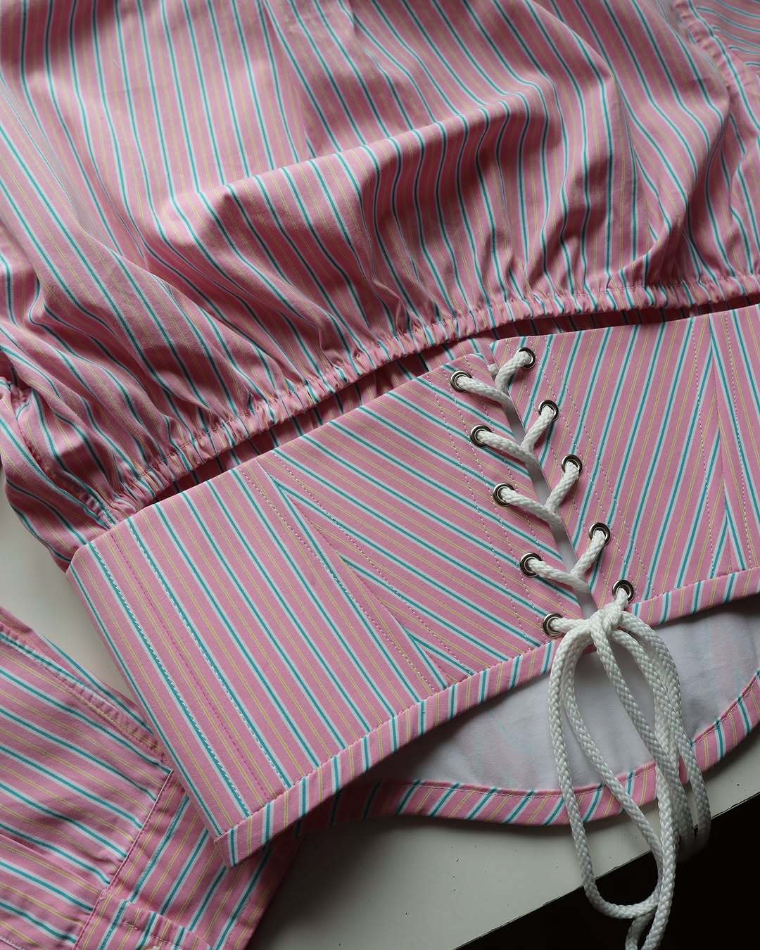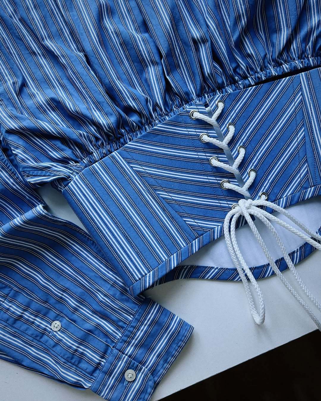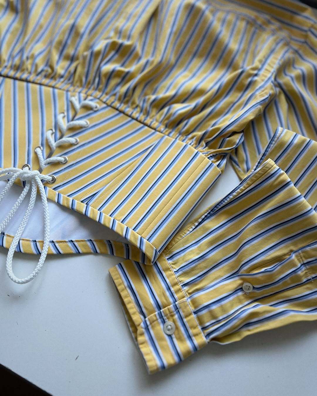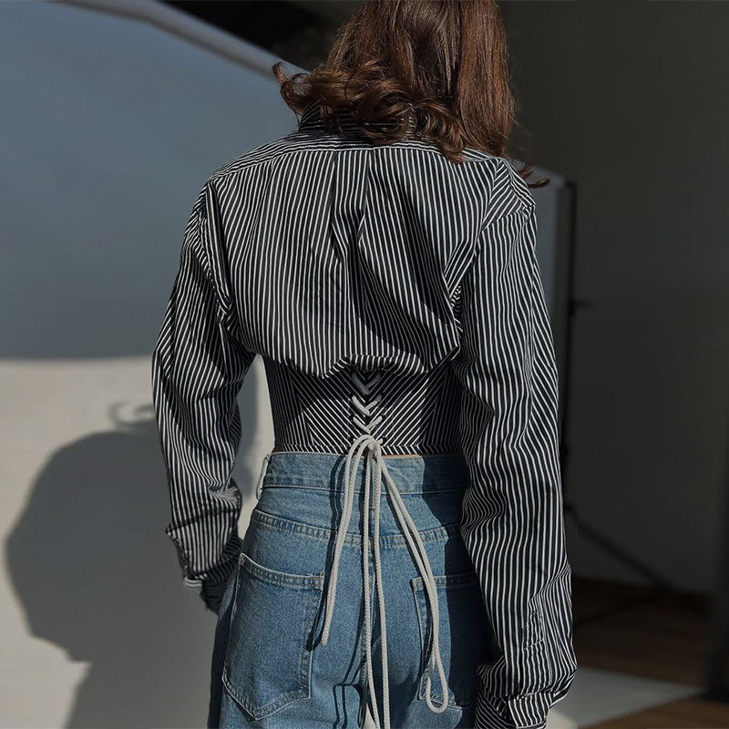 0 Review for Striped Lapel Fitted Waist Short-length Long Sleeves