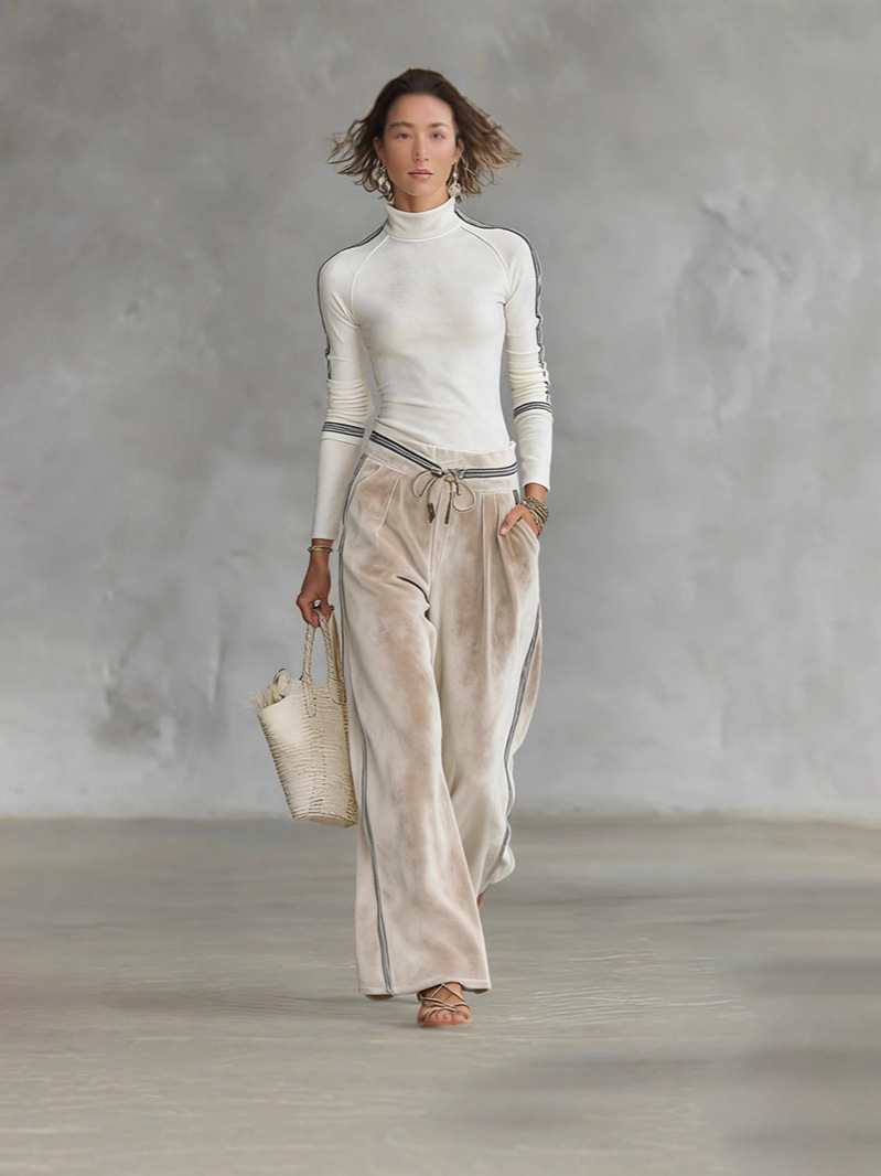 0 Review for Stylish Casual Sporty Turtleneck Zip-up Wide-leg Pants Set