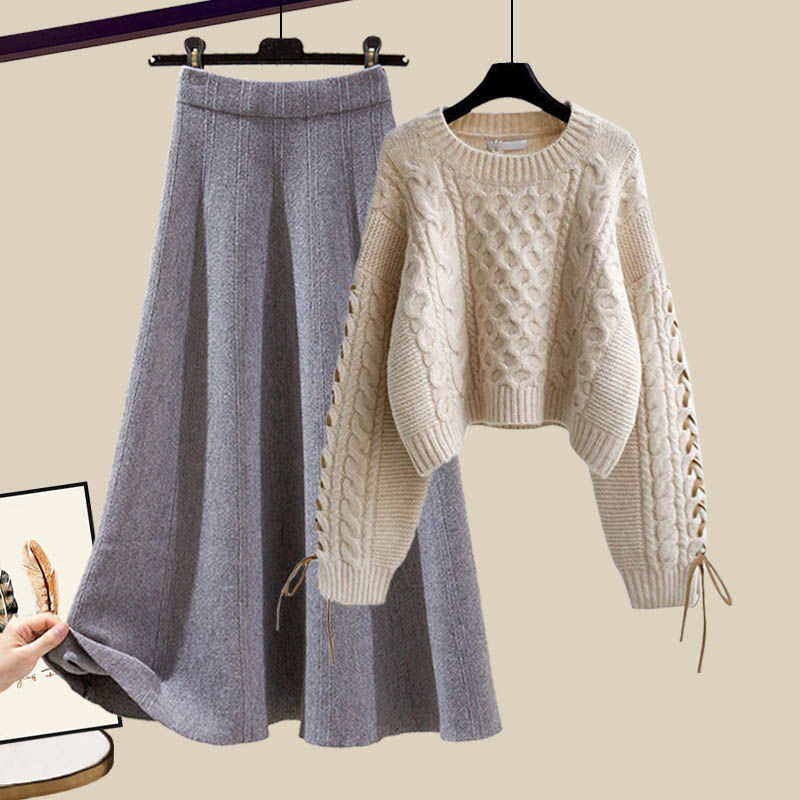 Colors: 986 Black Sweater [Single Piece], 986 White Sweater [Single Piece], Gray Skirt [Single Piece], Black Skirt [Single Piece], Khaki Skirt [Single Piece], Blue Skirt [Single Piece], Purple Skirt [Single Piece], Apricot Skirt [Single Piece], Gray Sweater [Single Piece], Khaki Sweater [Single Piece], White Sweater [Single Piece], 986 Base Sweater + Khaki Skirt, 986 Black Sweater + Khaki Skirt, Gray Sweater + Gray Skirt [Two-Piece Set], Khaki Sweater + Gray Skirt [Two-Piece Set], Gray Sweater + Black Skirt [Two-Piece Set], Khaki Sweater + Black Skirt [Two-Piece Set], Khaki Sweater + Khaki Skirt [Two-Piece Set], Gray Sweater + Blue Skirt [Two-Piece Set], Khaki Sweater + Blue Skirt [Two-Piece Set], Gray Sweater + Purple Skirt [Two-Piece Set], Khaki Sweater + Purple Skirt [Two-Piece Set], Gray Sweater + Apricot Skirt [Two-Piece Set], Khaki Sweater + Apricot Skirt [Two-Piece Set], White Sweater + Gray Skirt [Two-Piece Set], White Sweater + Black Skirt [Two-Piece Set], White Sweater + Khaki Skirt [Two-Piece Set], White Sweater + Blue Skirt [Two-Piece Set], White Sweater + Purple Skirt [Two-Piece Set], White Sweater + Apricot Skirt [Two-Piece Set]