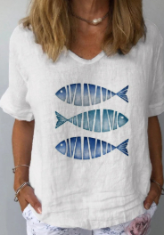0 Review for Stylish Loose-fit Printed Womens Short-sleeve Top