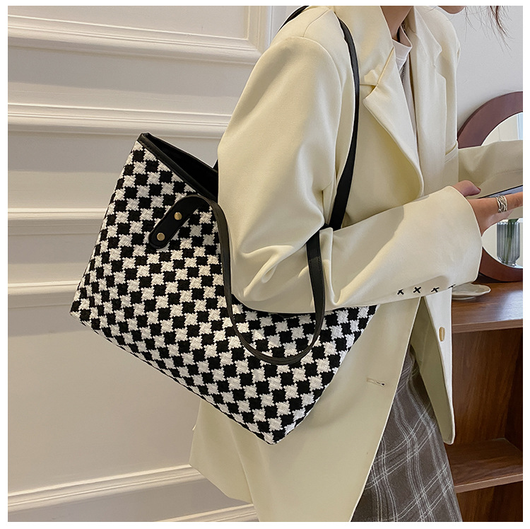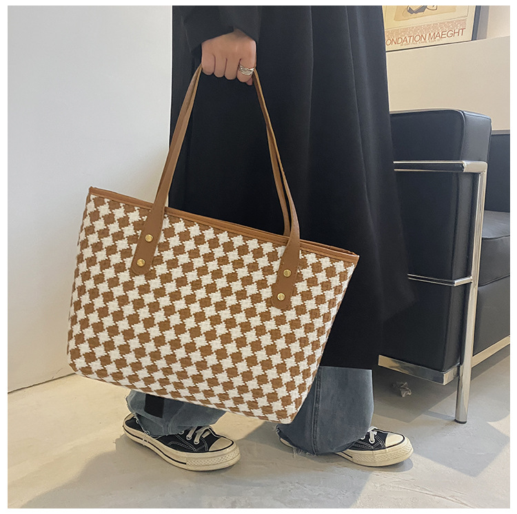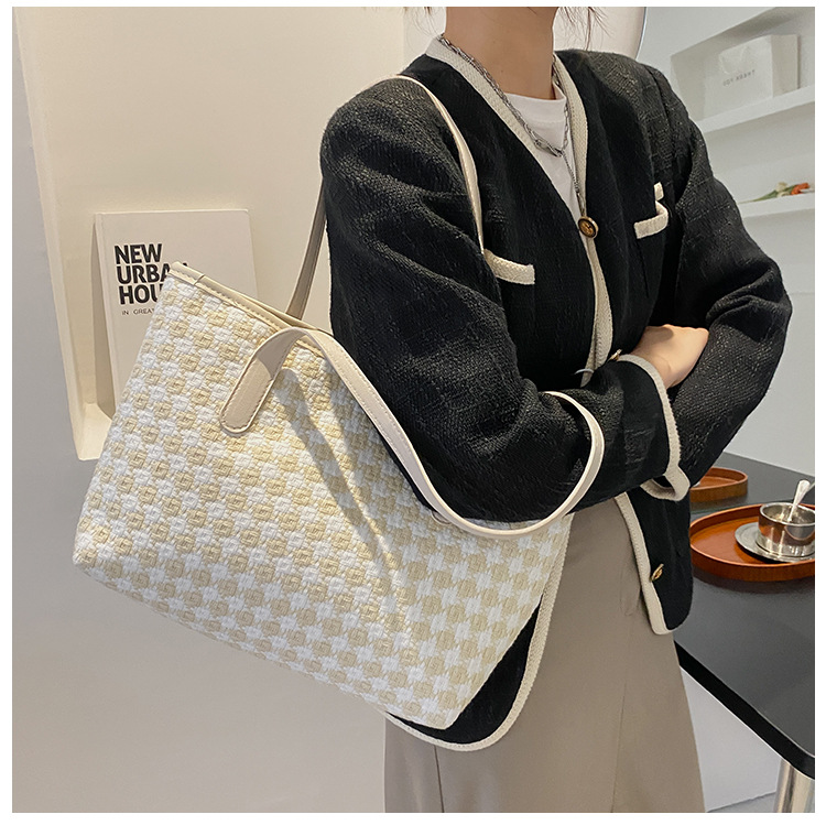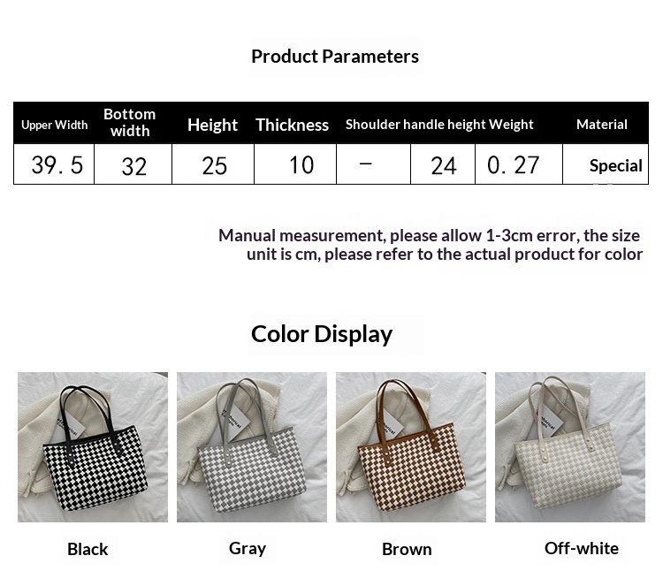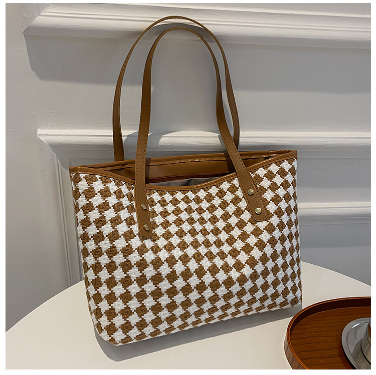 0 Review for Stylish Plaid Shoulder Tote With Large Capacity