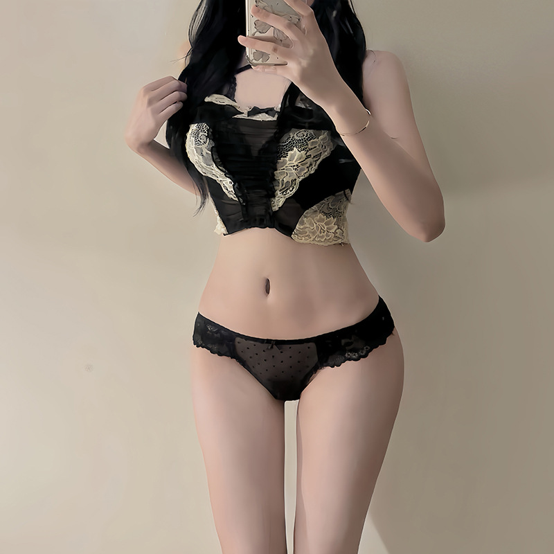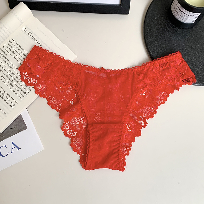 Sultry Lace-trimmed Low-rise Thong High-slit Mid-hip Underwear In European And American Style