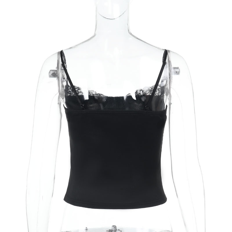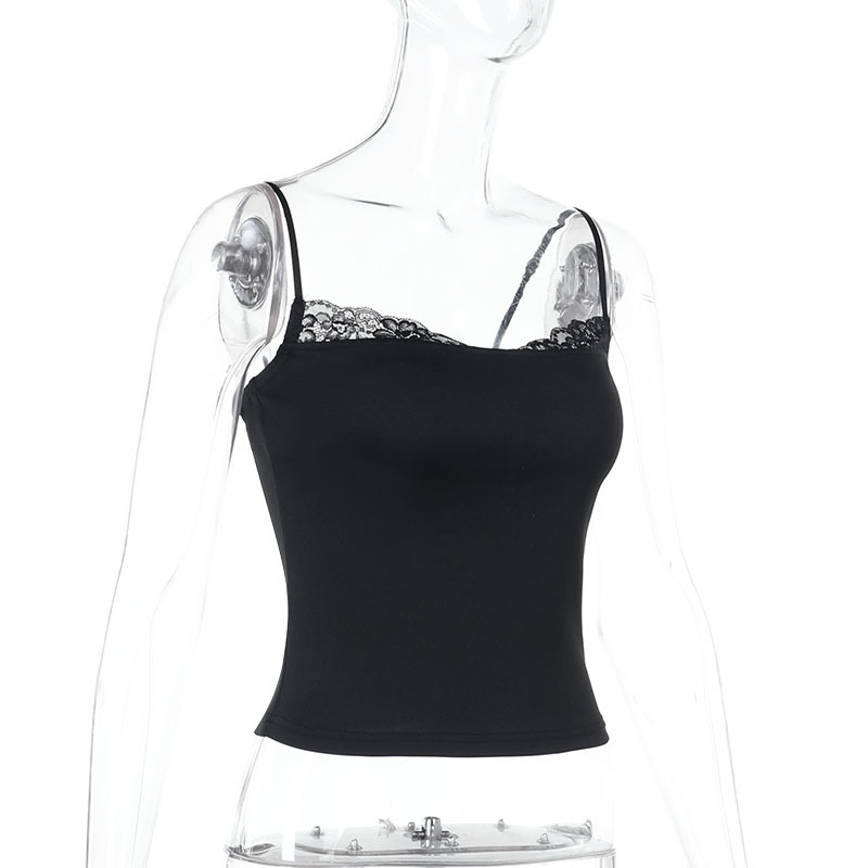 0 Review for Summer Slim Fit Solid-color Lace-spliced Camisole