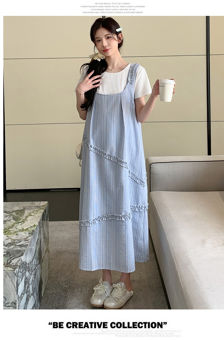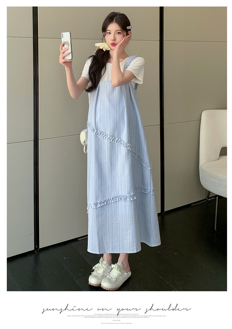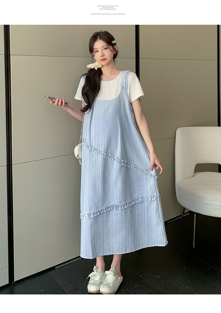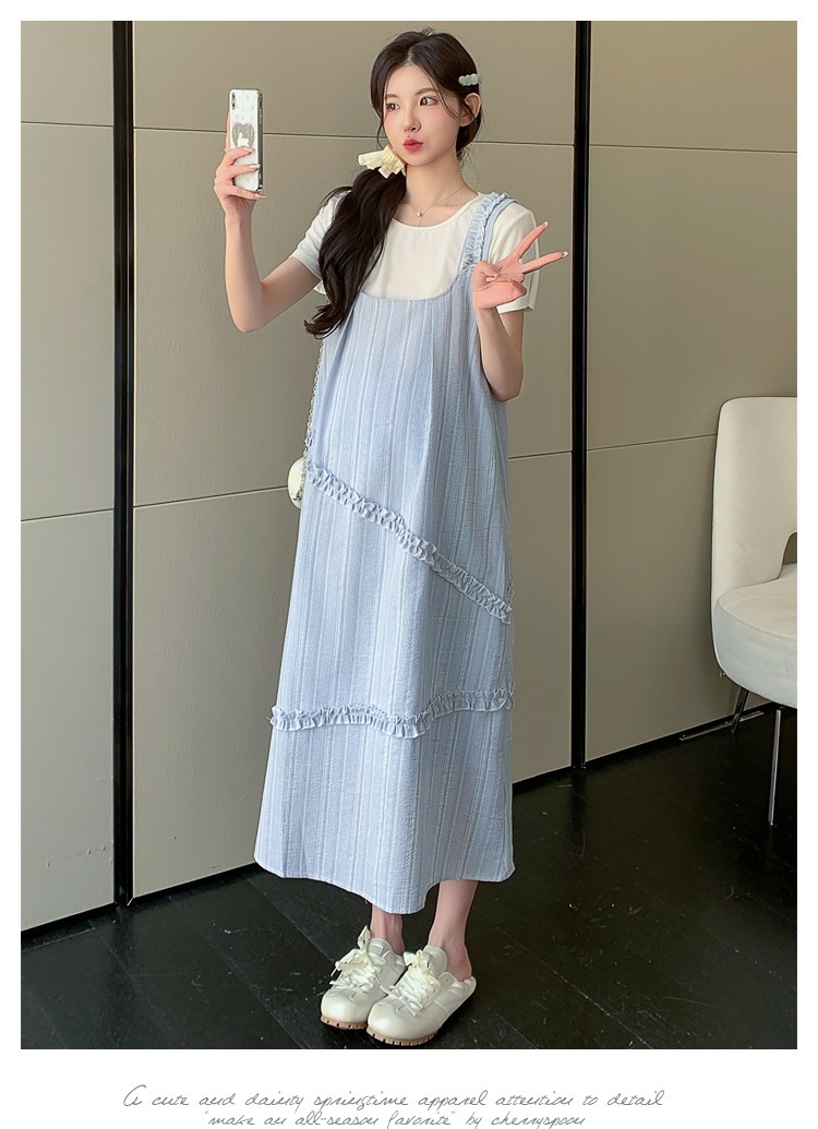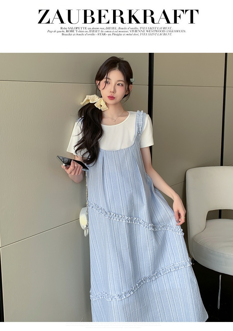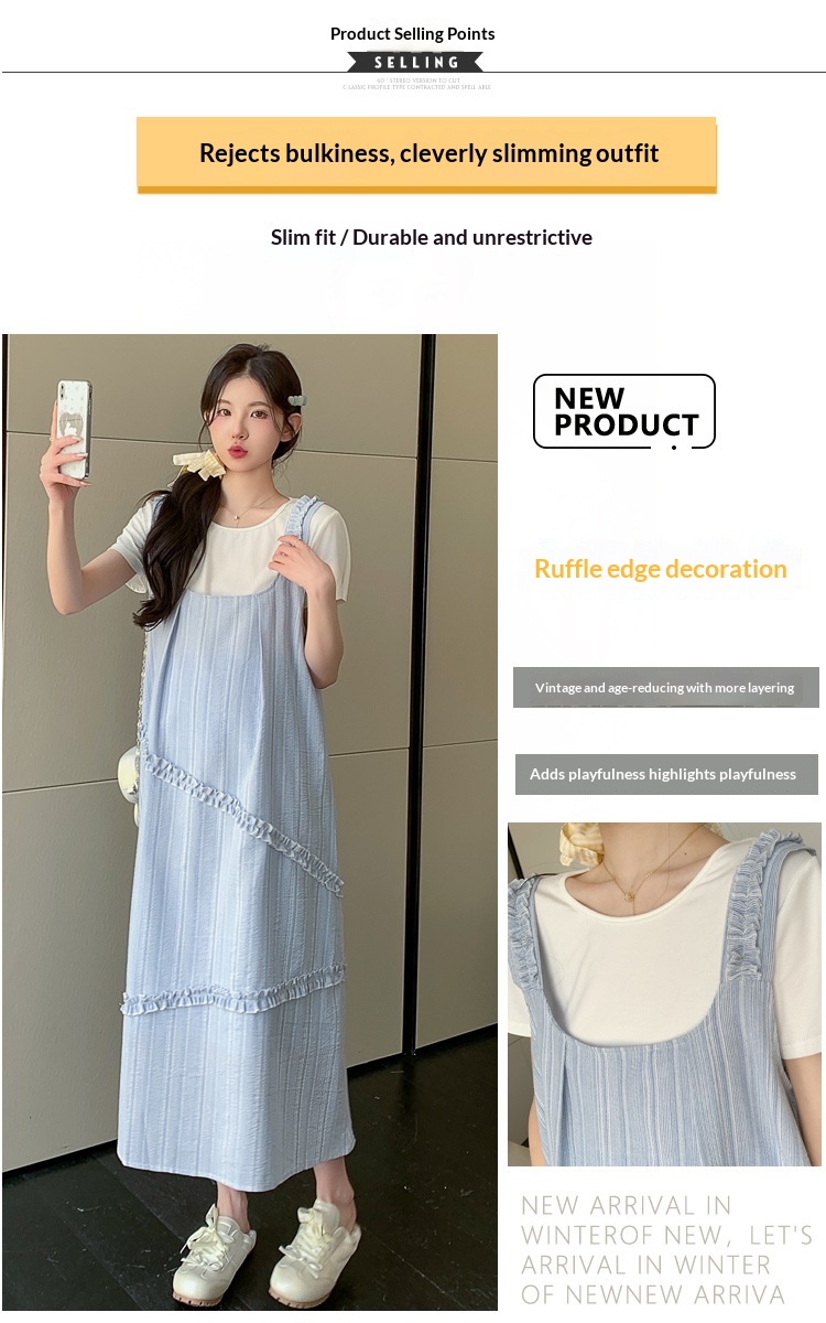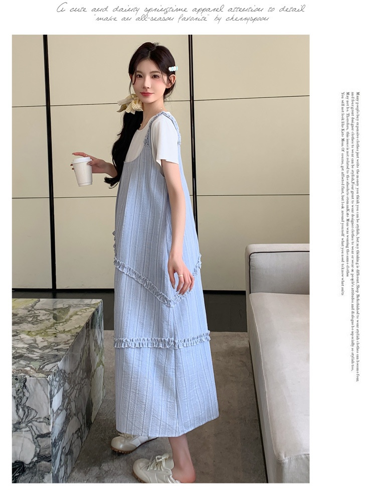 Sweet Korean-style Loose-fitting Figure-flattering Top And Vest Skirt Two-piece Set
