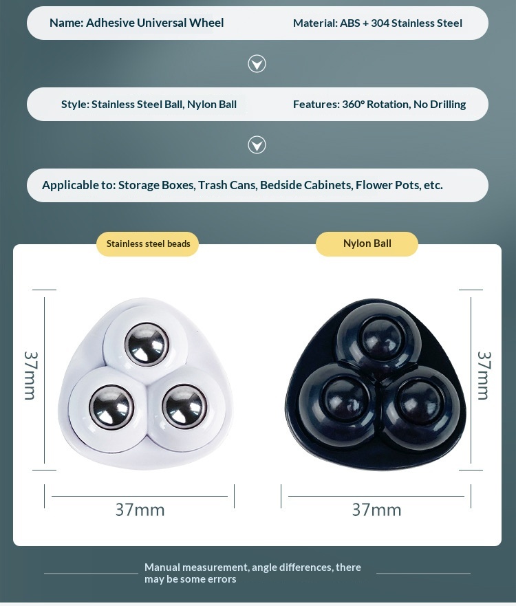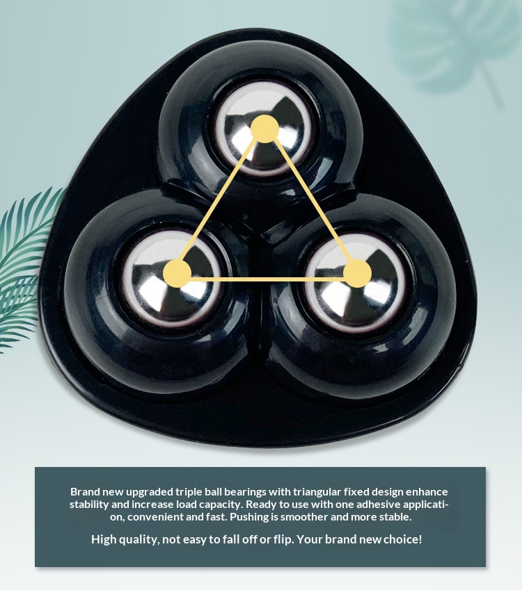 Three-ball No-drill Silent Wear-resistant Adhesive Casters With Universal Swivel