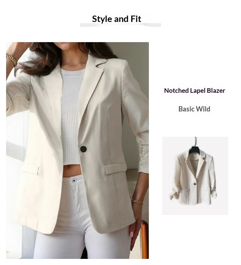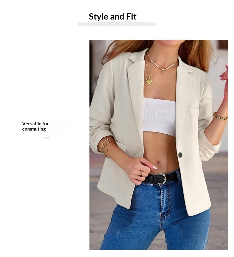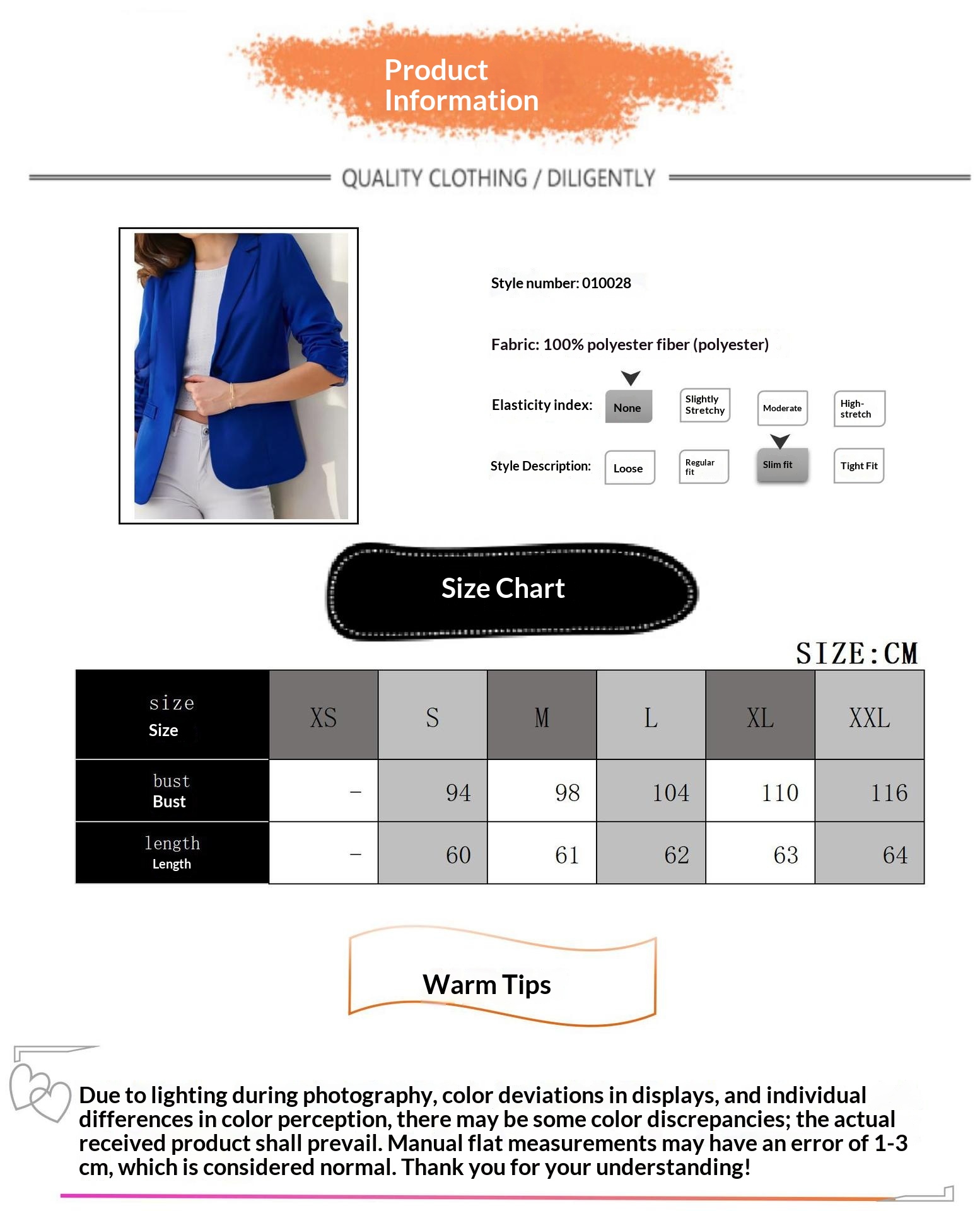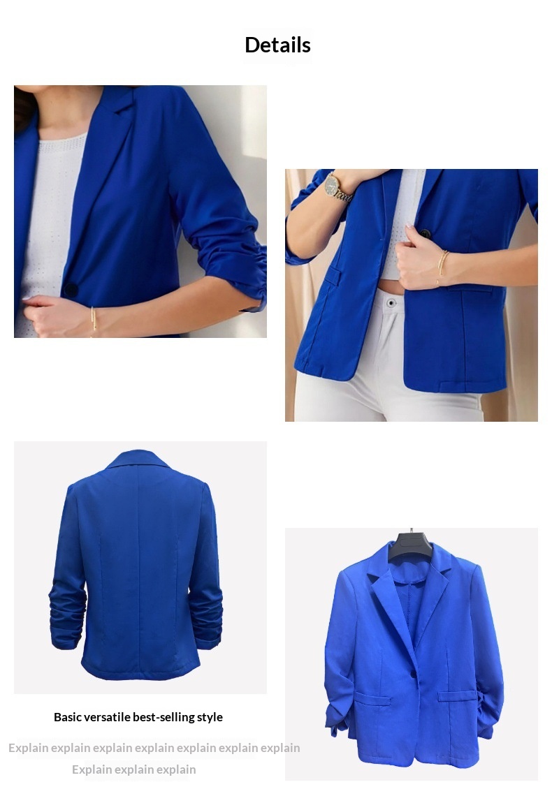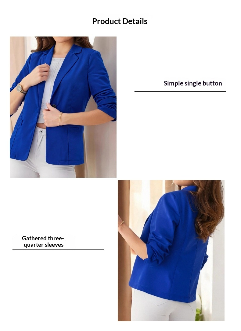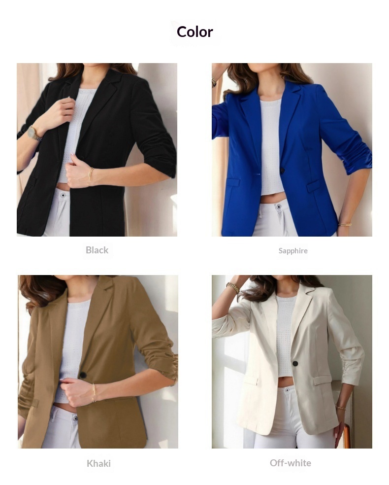 0 Review for Three-quarter-sleeve Pleated Slim-fit Womens Office Blazer