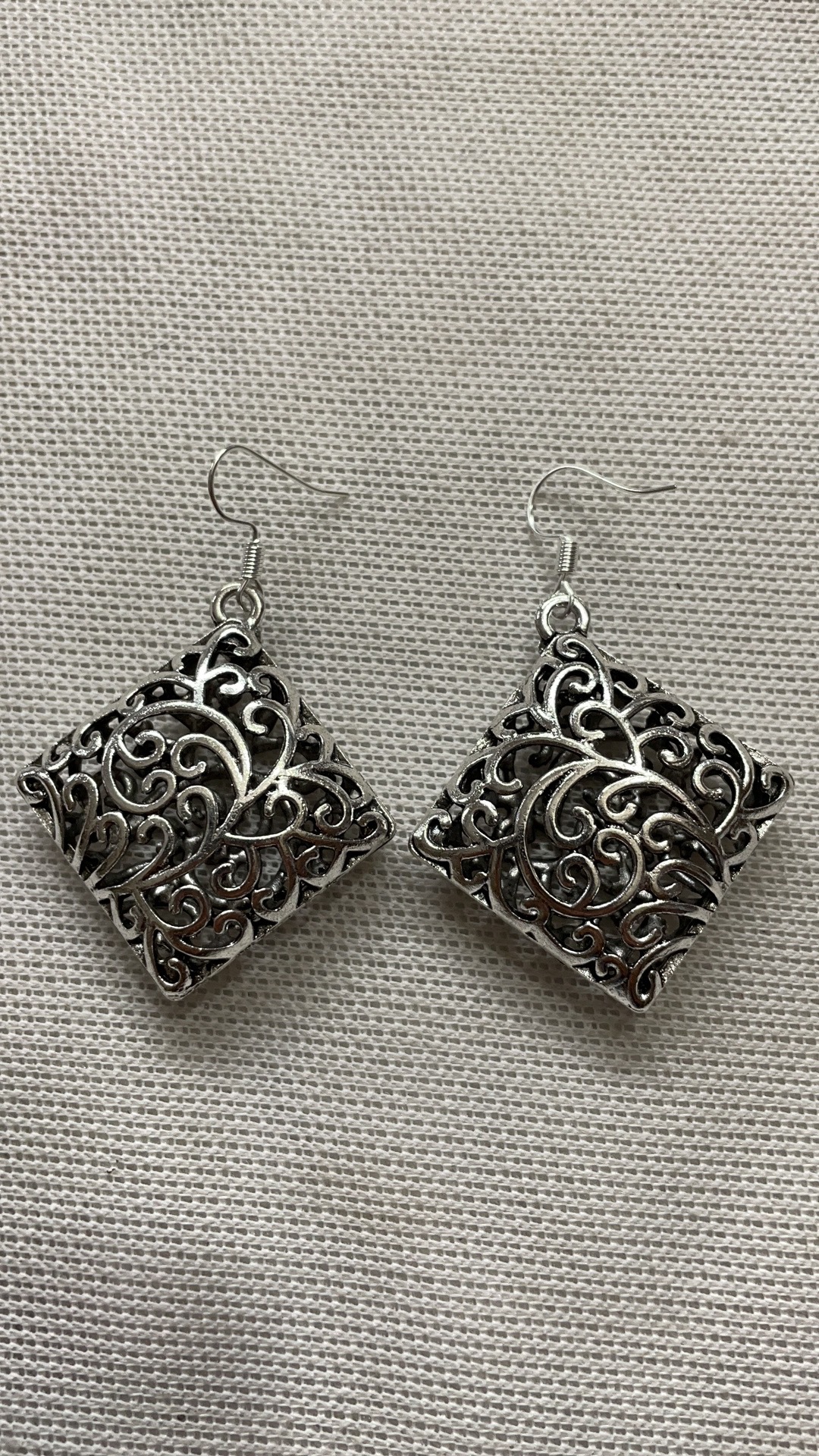 0 Review for Tibetan Silver Square Earrings With National Style Pendants