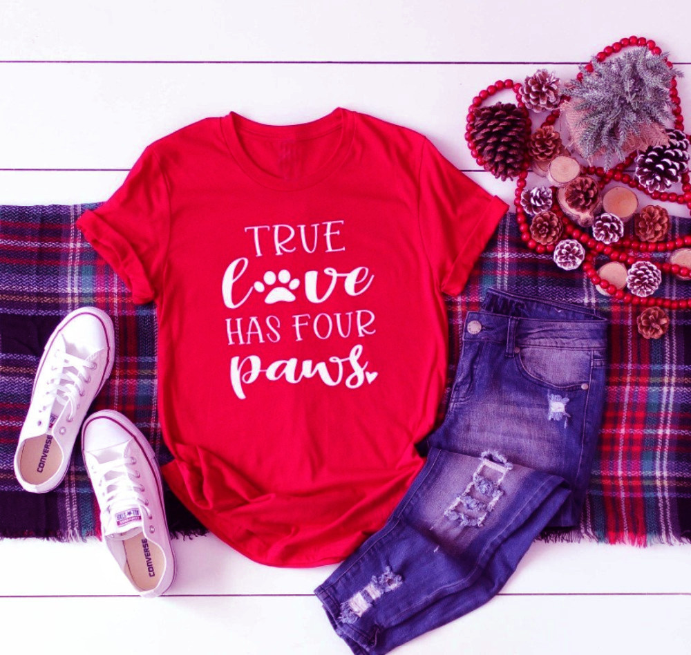 0 Review for True Love Has Four Paws Letter Streetwear Short Sleeve