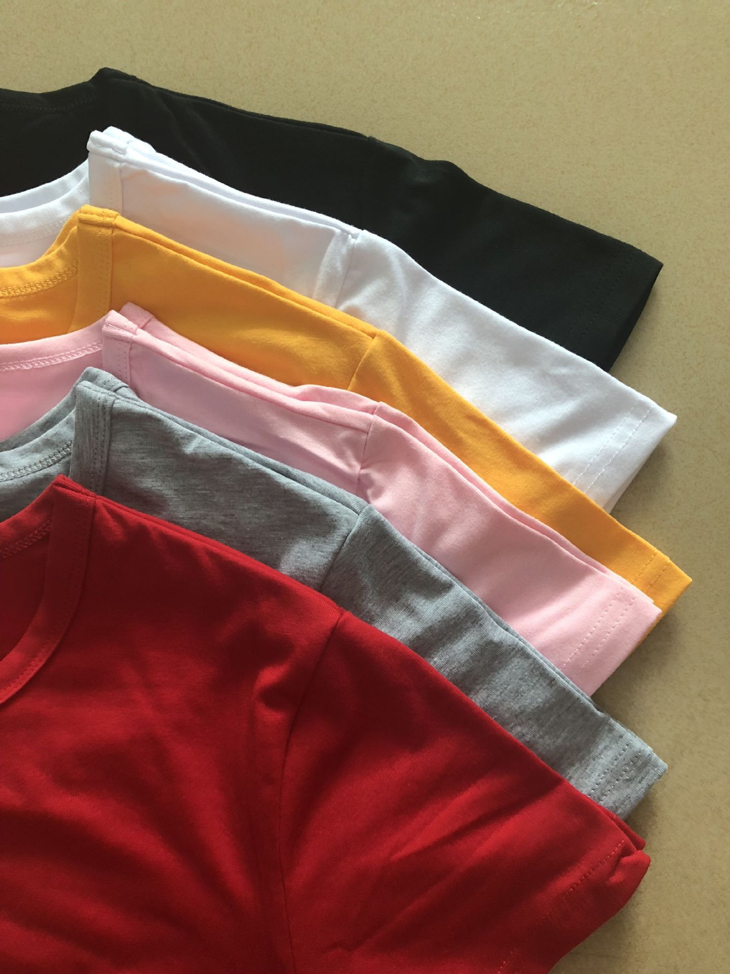 Colors: White, Red, Black, Pink T-shirt with white lettering, Yellow T-shirt with black lettering, Pink T-shirt with black lettering, Yellow T-shirt with white lettering, Gray T-shirt with black lettering, Gray T-shirt with white lettering