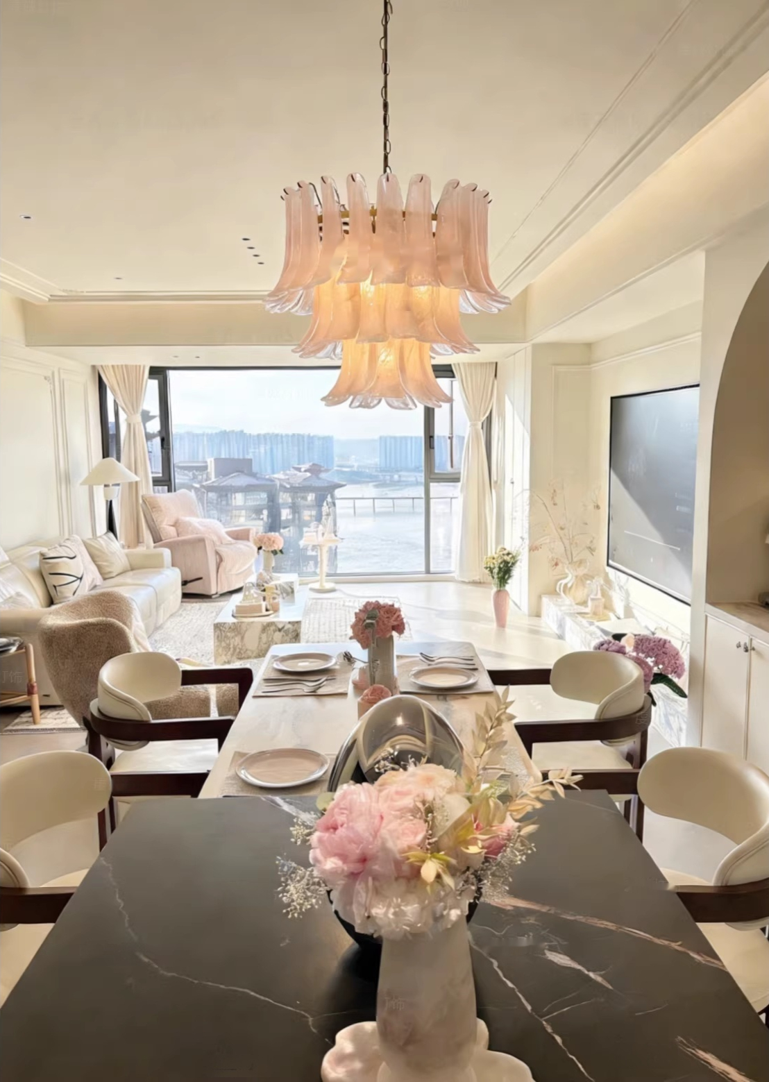Villa Duplex Dining Room And Bedroom Murano Glass Horseshoe Chandelier