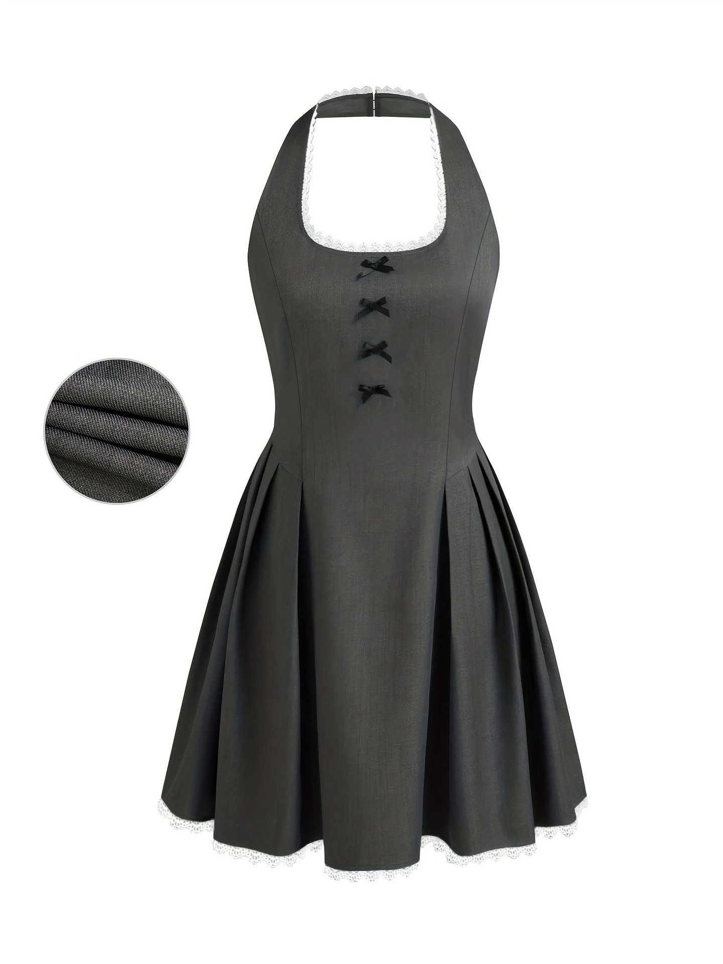 0 Review for Waist-Cinched Slimming Butterfly-Knot Halter Dress