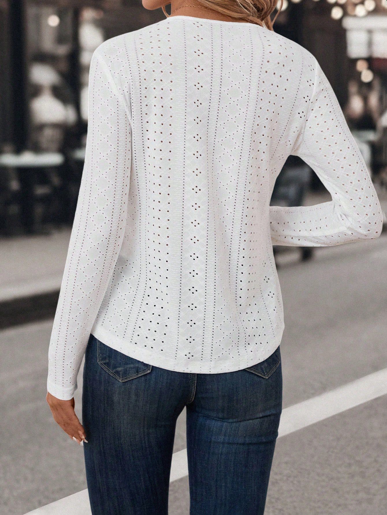 0 Review for White V-neck Long-Sleeve Buttoned Hollow-Out Casual Shirt