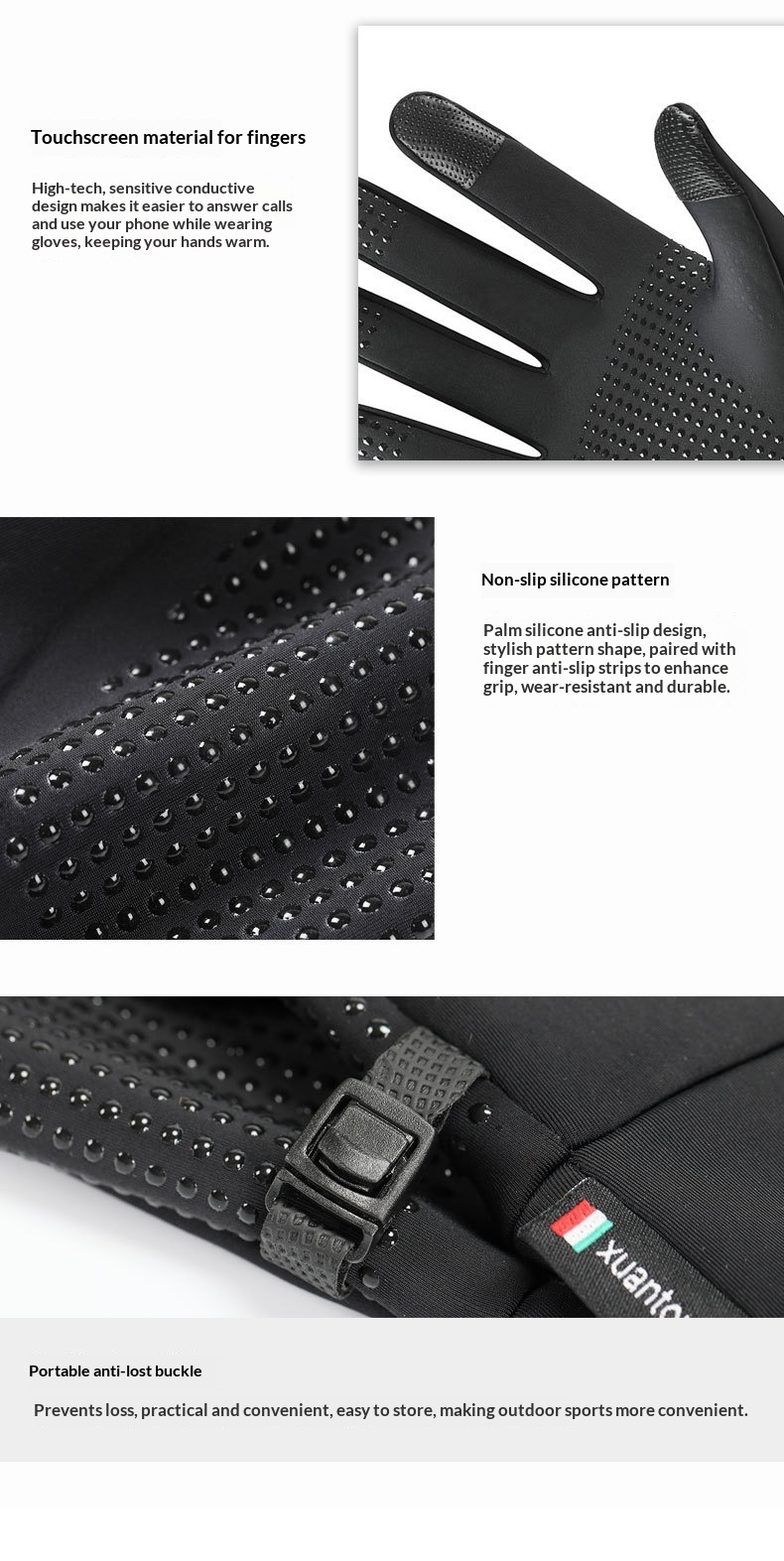 Features: Waterproof, non-slip, touchscreen-compatible, warm, windproof, and night-reflective visibility