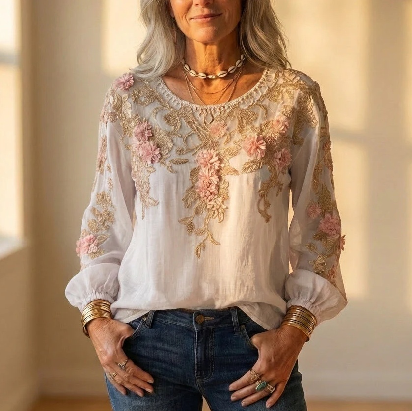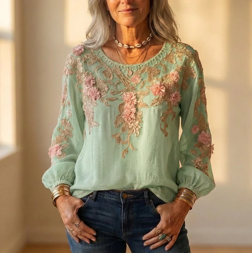 Women's 3D Printed Long-sleeved Shirt Loose All-match High-grade Top