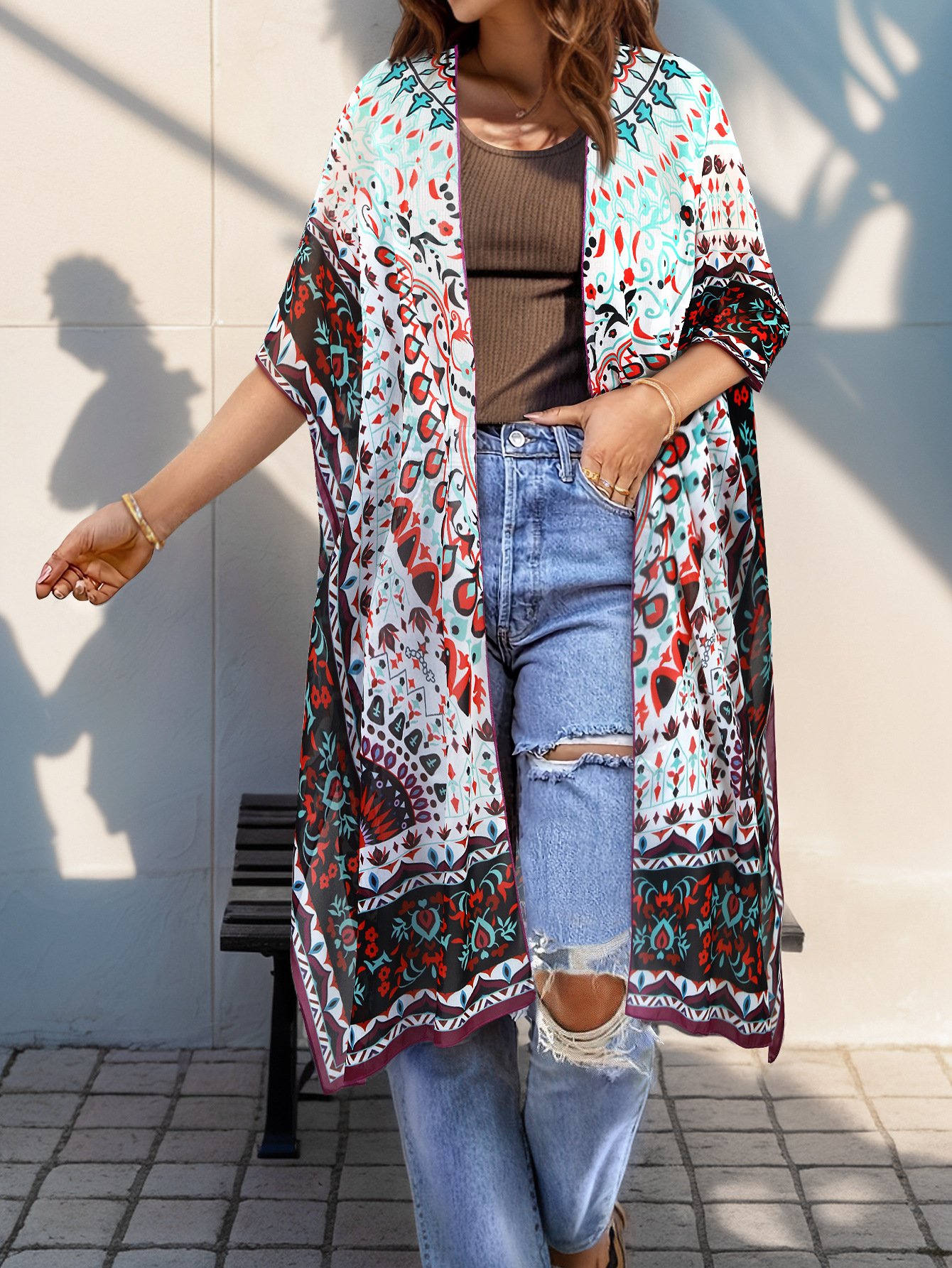 0 Review for Women's Aztec-print Batwing Cardigan Cloak