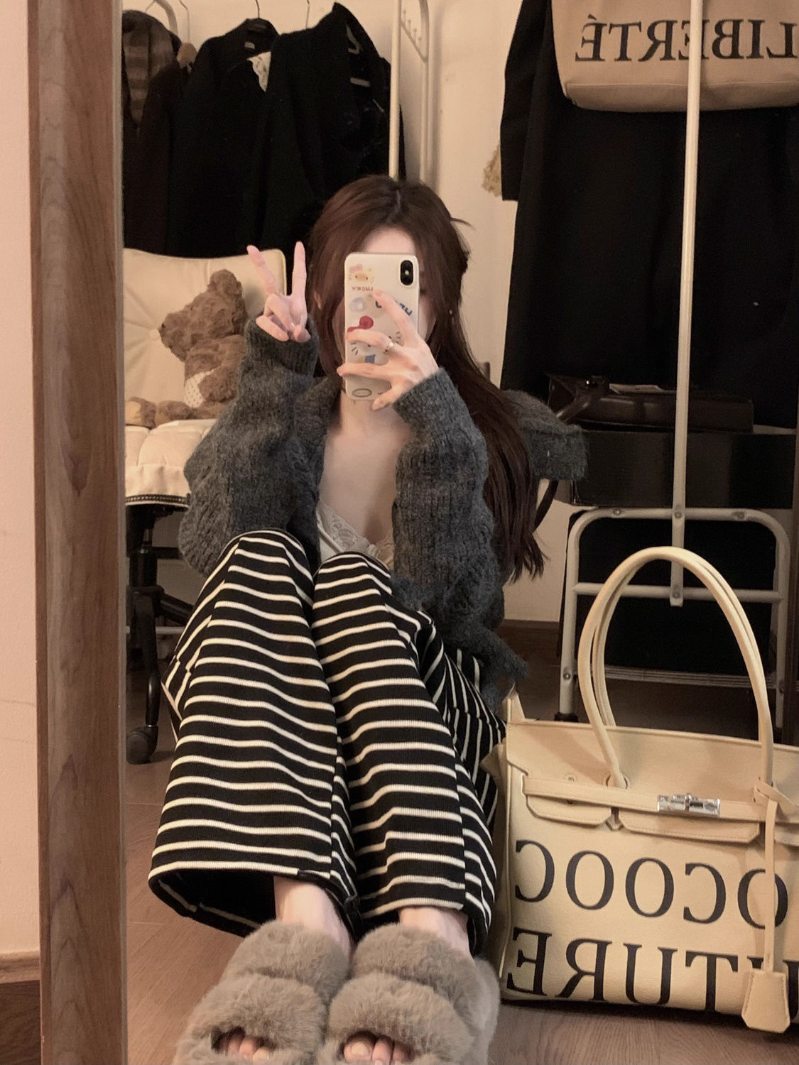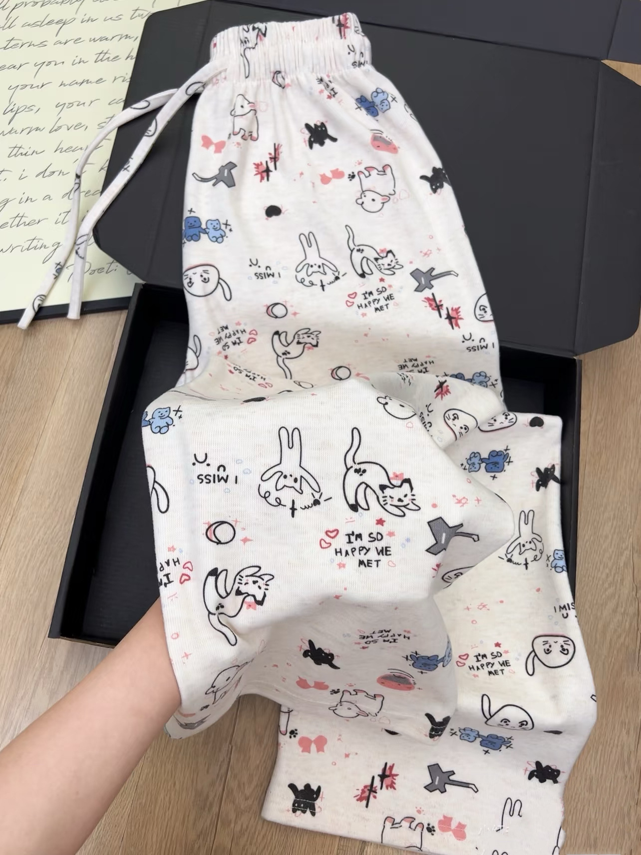 Colors: Puppy Print — Glutinous Rice Pants, Star Print — Glutinous Rice Pants, Small Floral — Glutinous Rice Pants, Graffiti Beige — Glutinous Rice Pants, Solid Beige — Glutinous Rice Pants, Solid Gray — Glutinous Rice Pants, Solid Dark Gray — Glutinous Rice Pants, Coffee Color — Glutinous Rice Pants, Black Striped — Glutinous Rice Pants