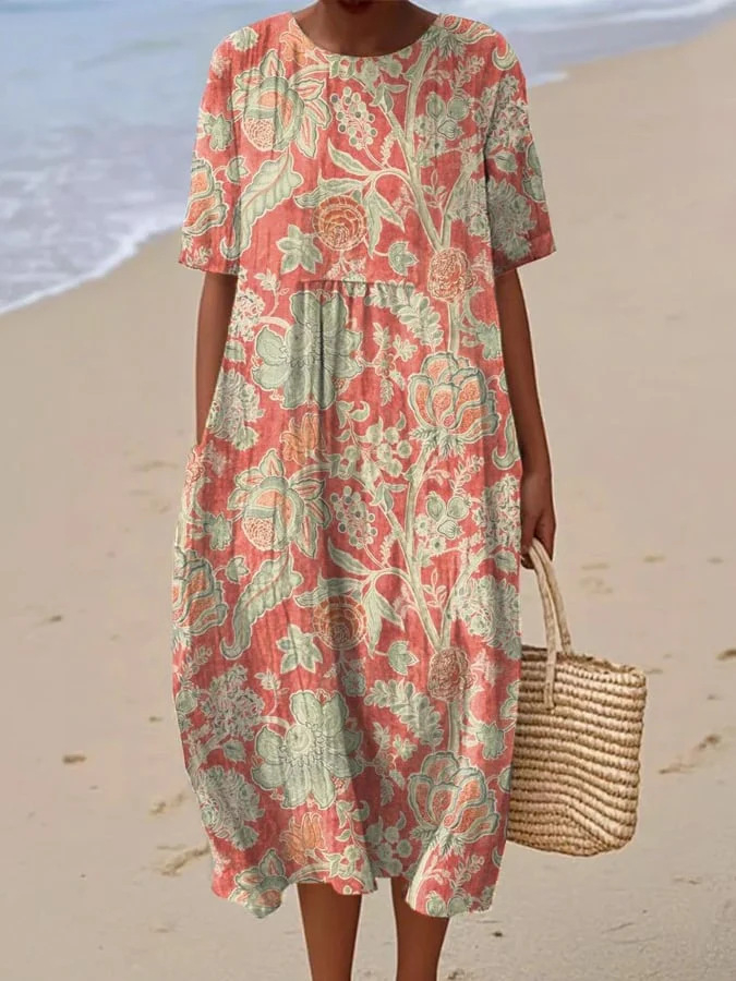 Women's Crew-Neck Printed Casual Fashion Dress