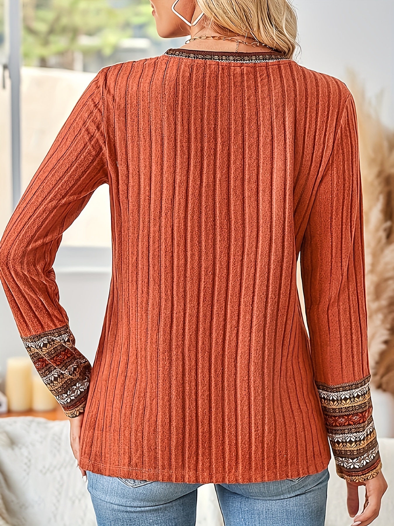 0 Review for Women's Geometric Stripe Print Patchwork Top