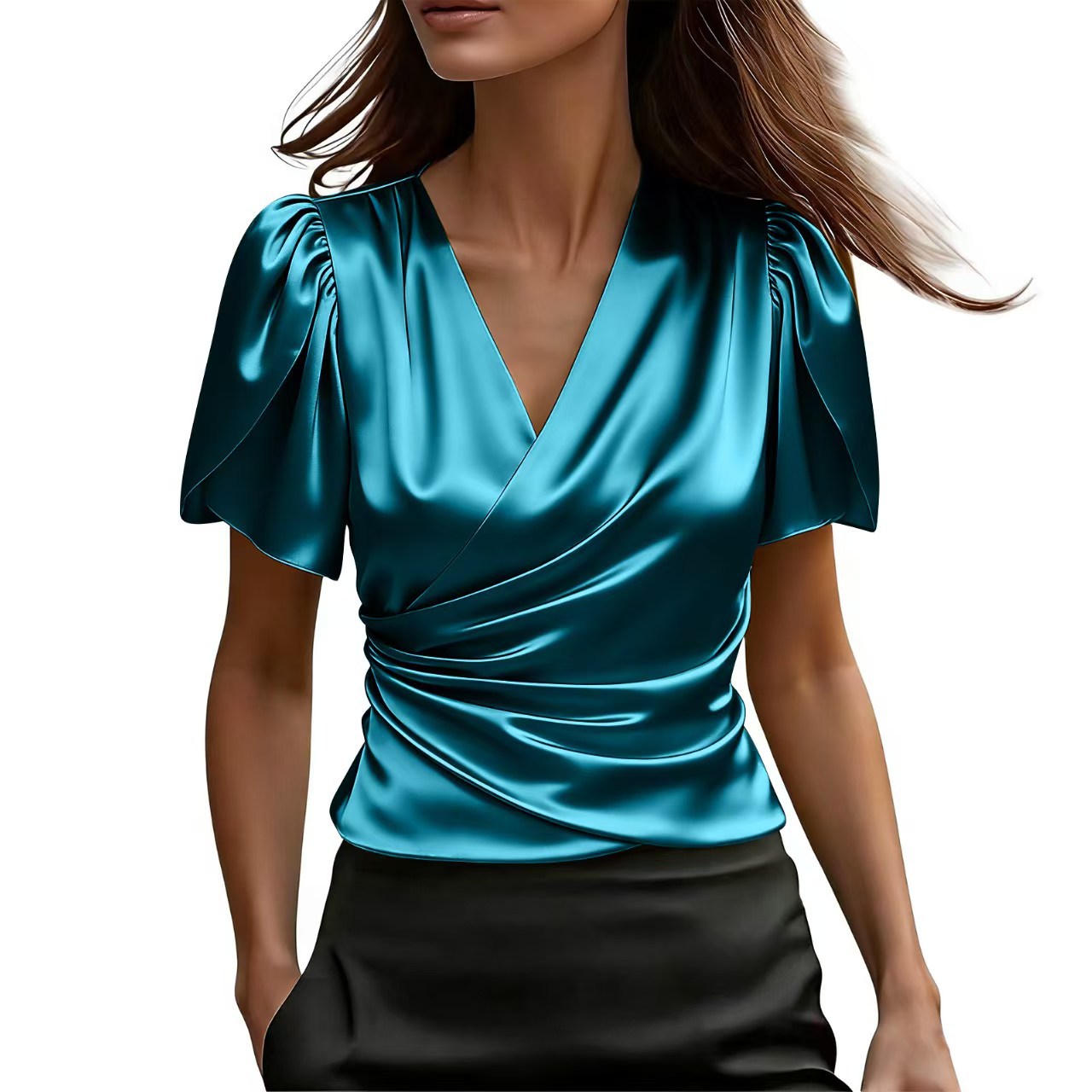 0 Review for Women's Irregular Designer-Style Pleated Short-Sleeve Shirt