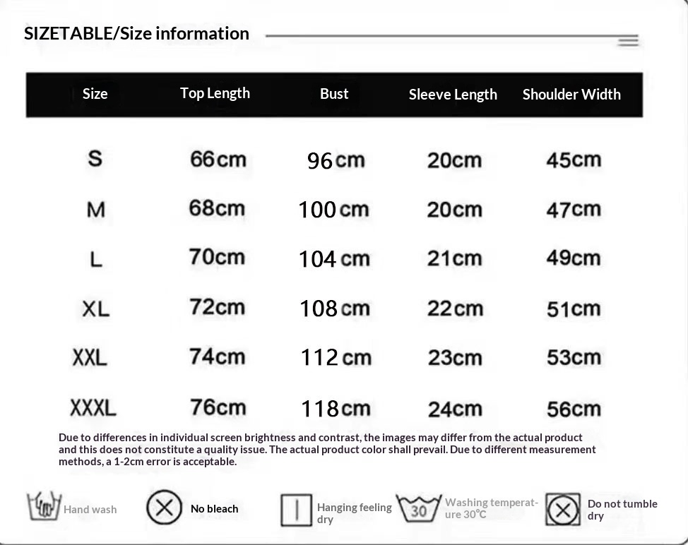Sizes: S, M, L, XL, XXL, XXXL