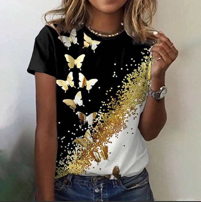 0 Review for Women's Round-Neck Short-Sleeve Casual Top With 3D Flower Print
