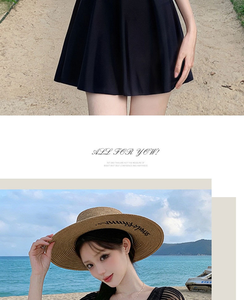 Women's Skirted One-Piece Swimsuit And Briefs Set