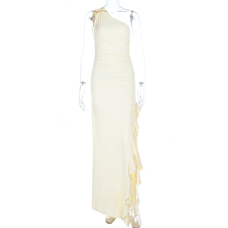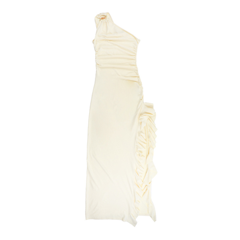 0 Review for Women's Slant-Shoulder Ruffle-Front Split Dress