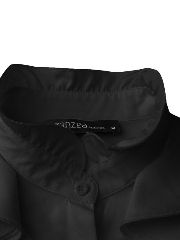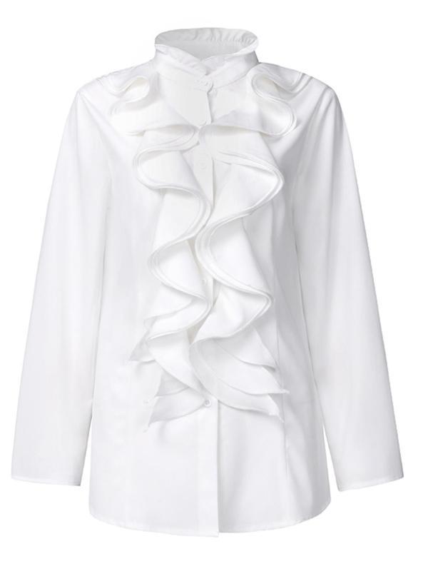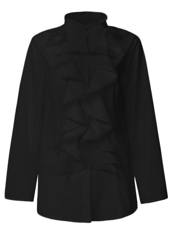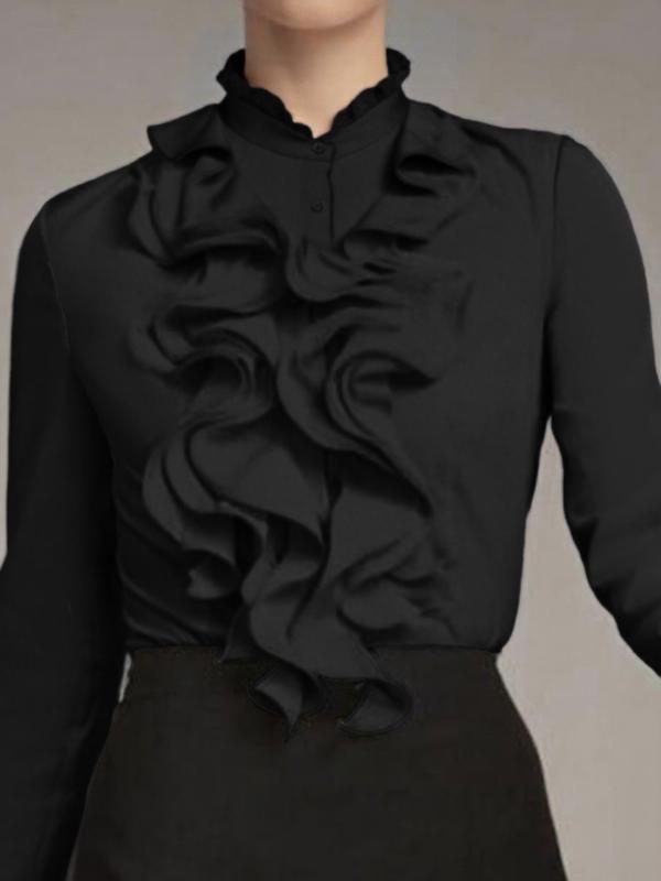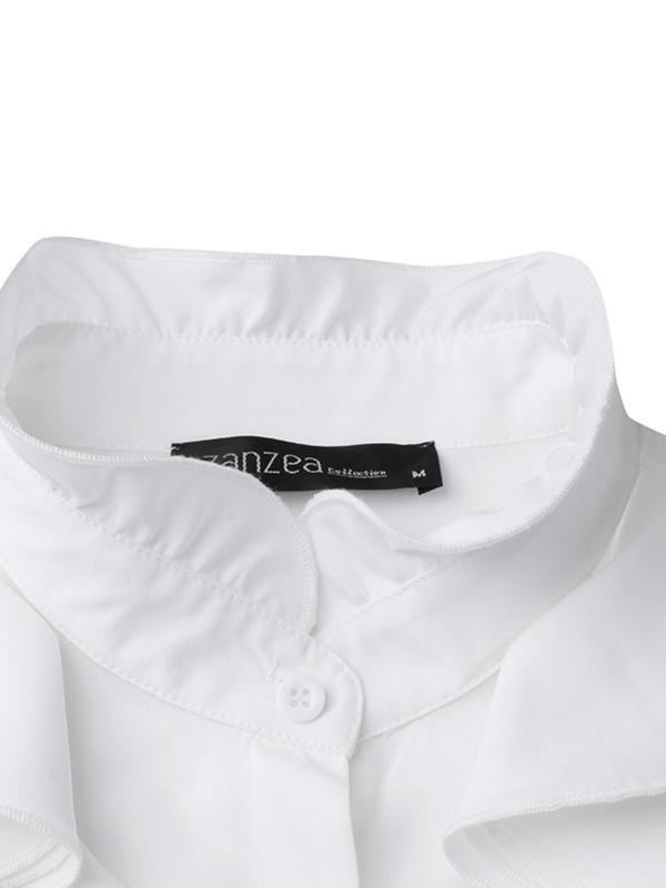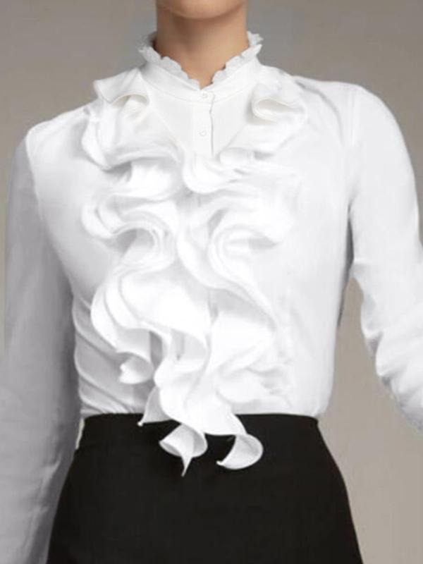 0 Review for Women's Solid-Colored Ruffle-Trimmed Button-Front Shirt