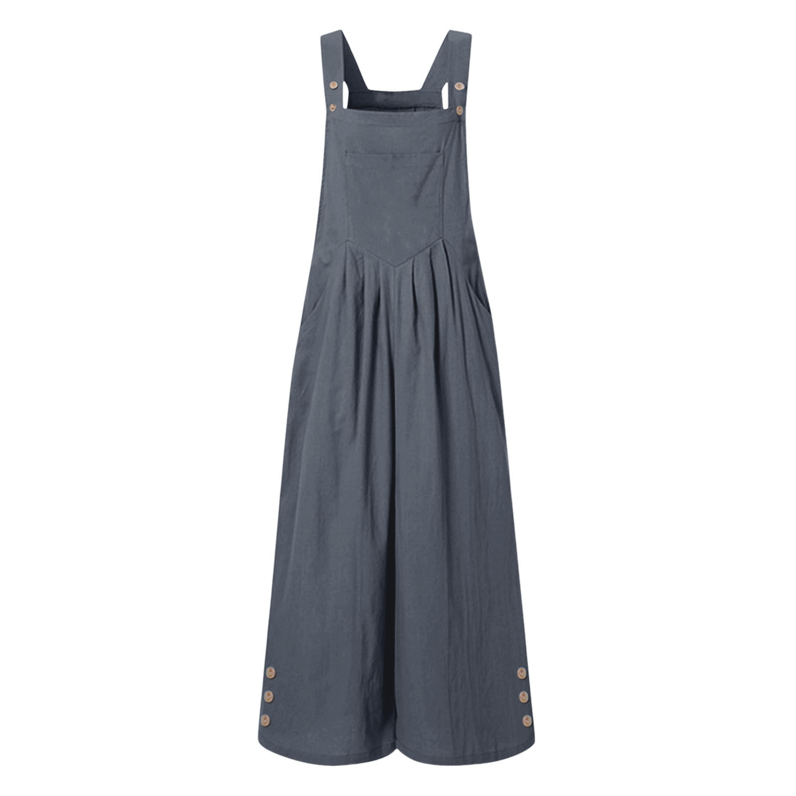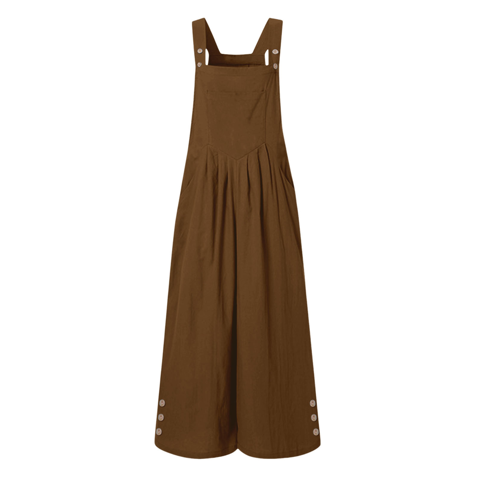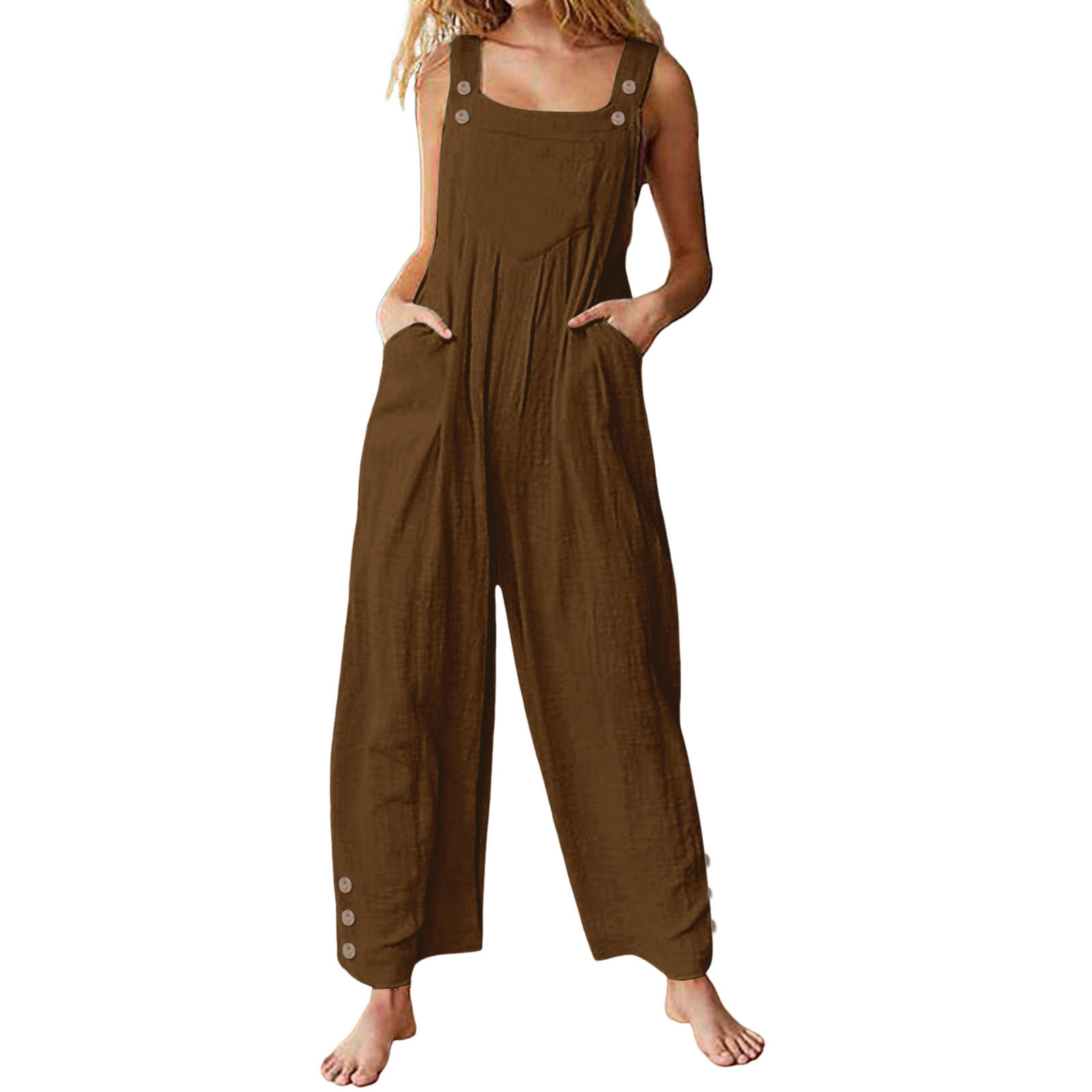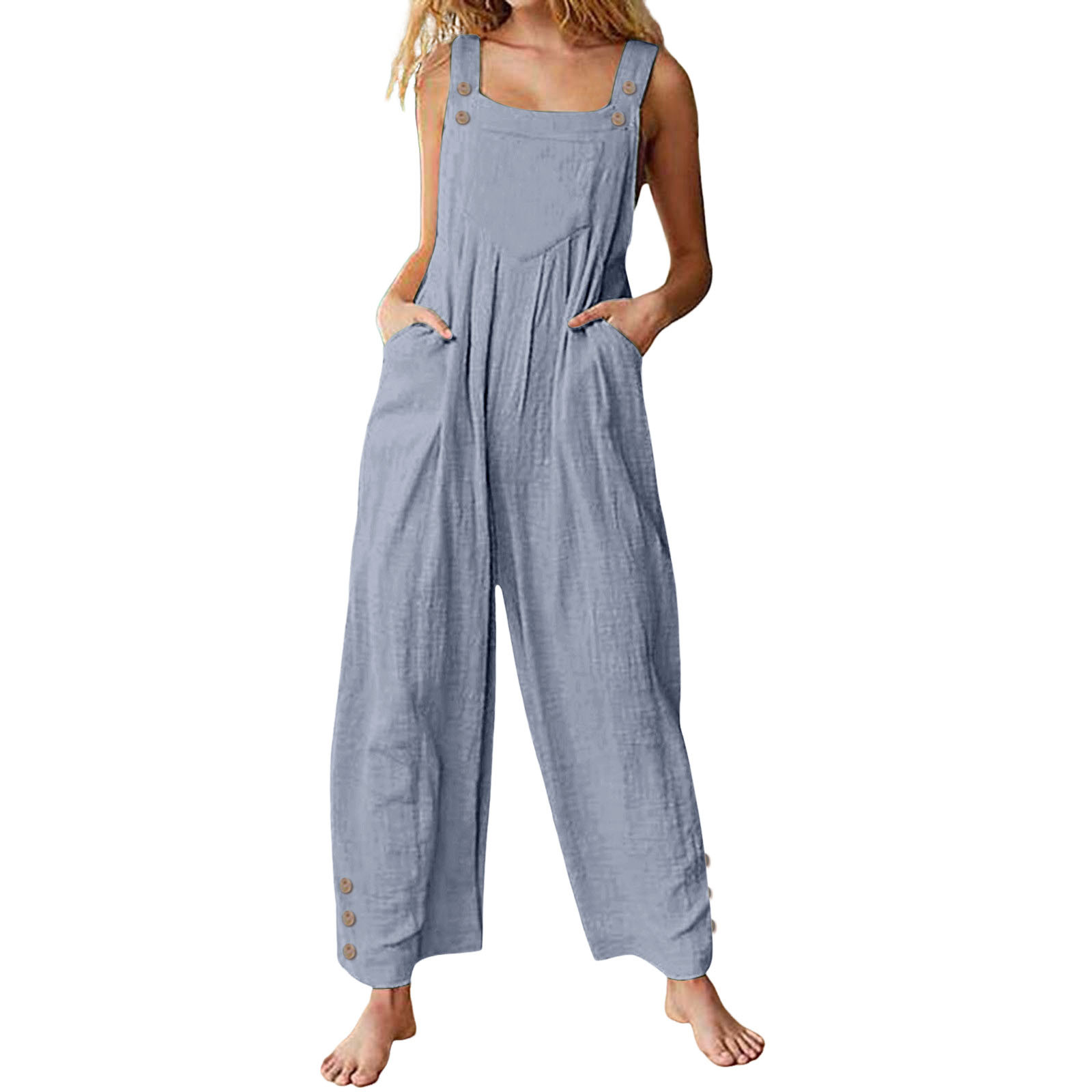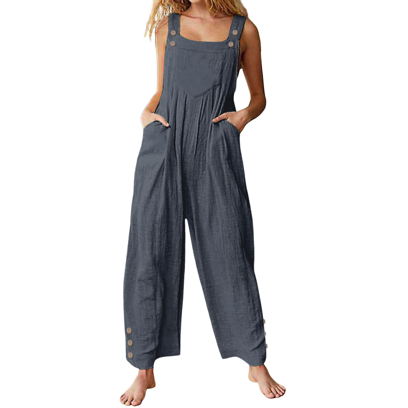 0 Review for Womens Casual Loose-fitting Sleeveless Buttoned Jumpsuit