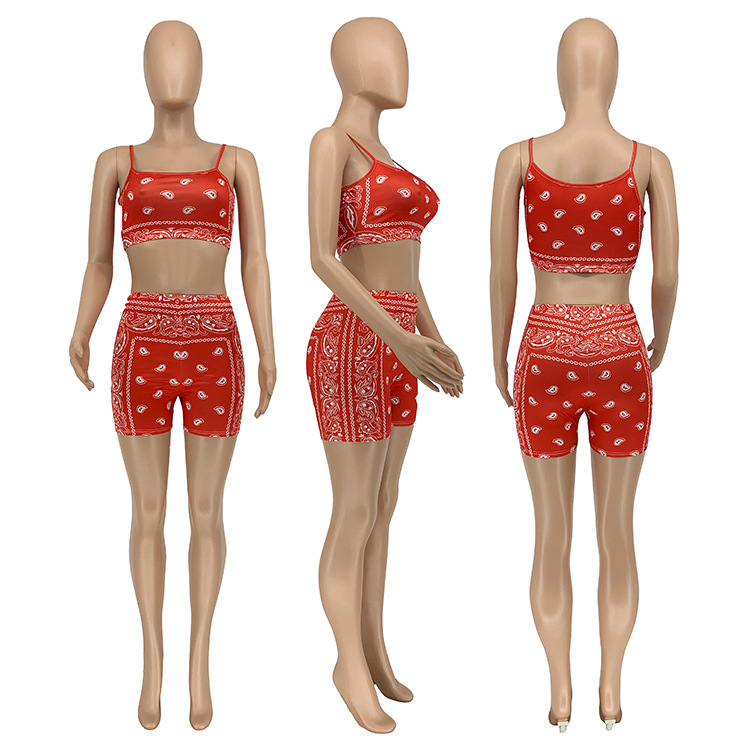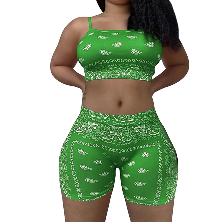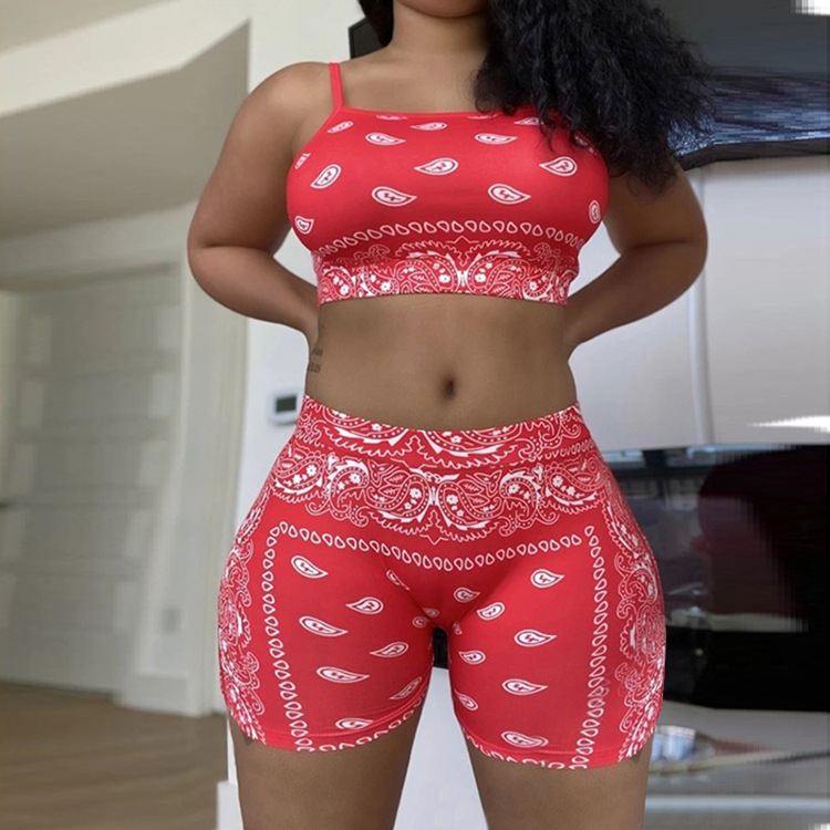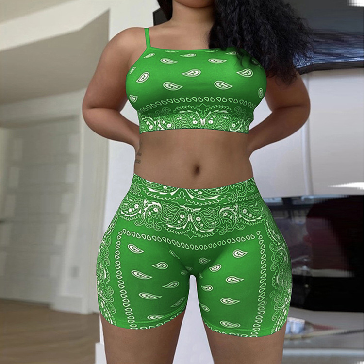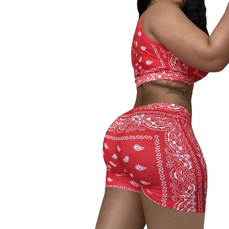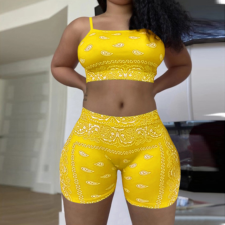Womens Casual Printed Camisole And Sleeveless Shorts Two-Piece Set