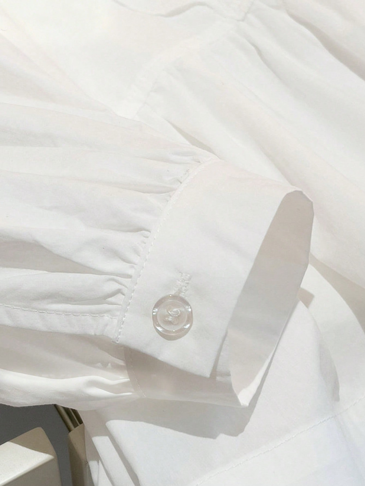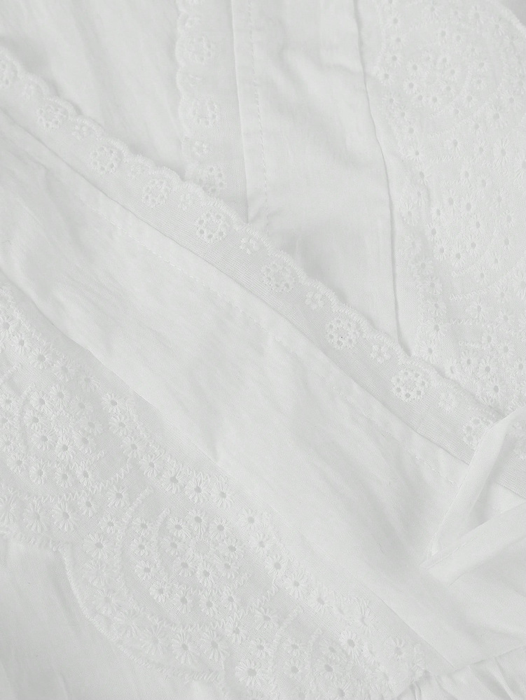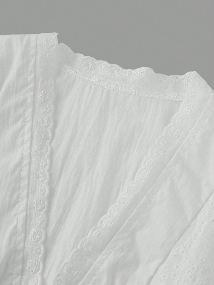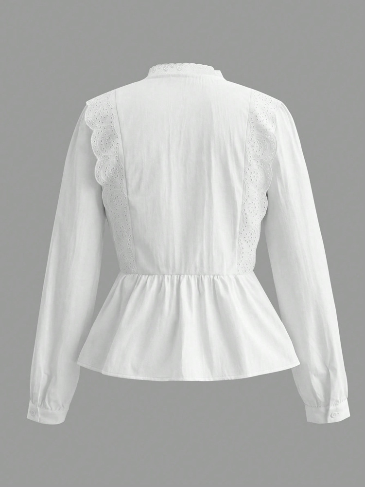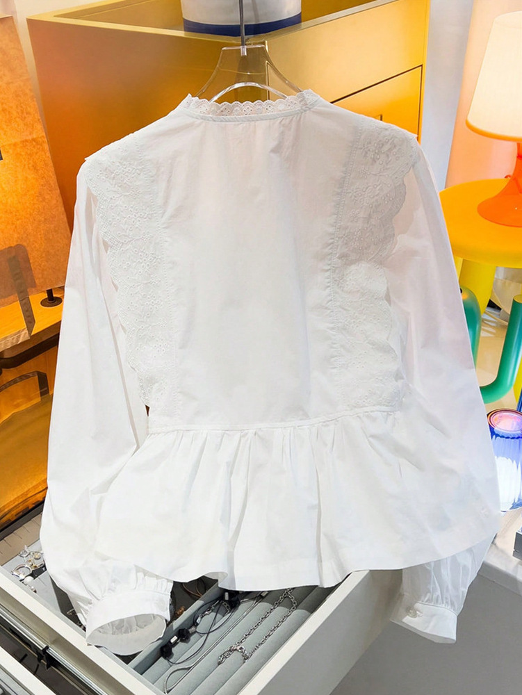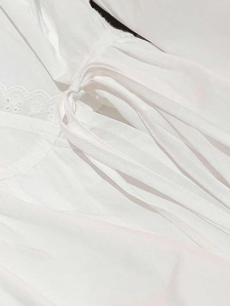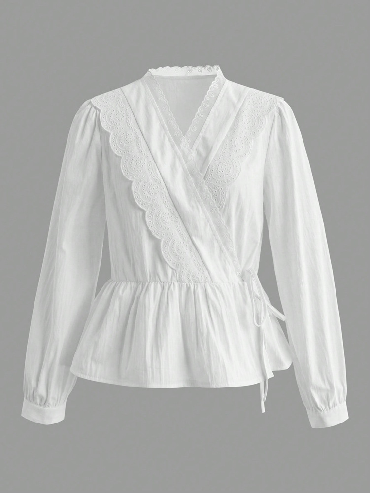 0 Review for Womens Designer Lace Trim Long-Sleeve Casual Tie-Up Shirt Top