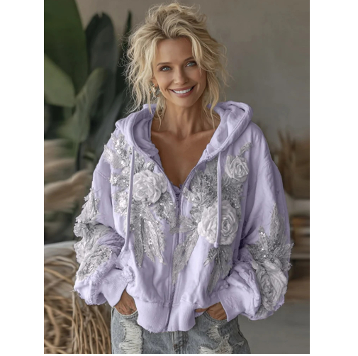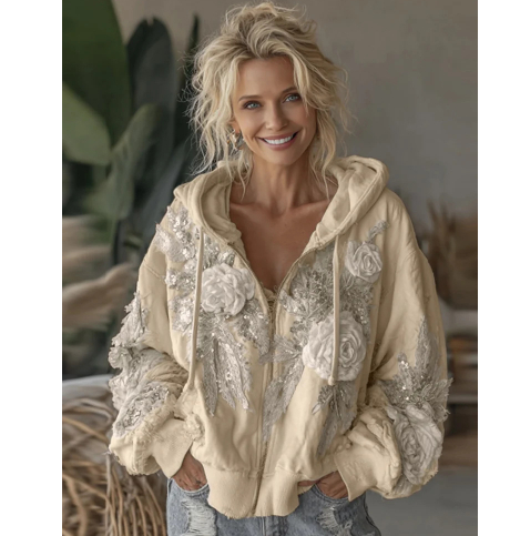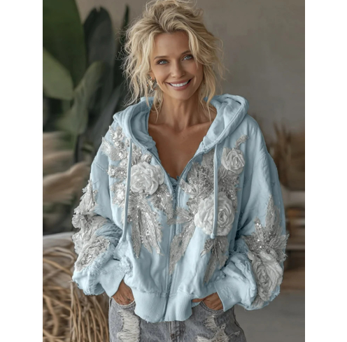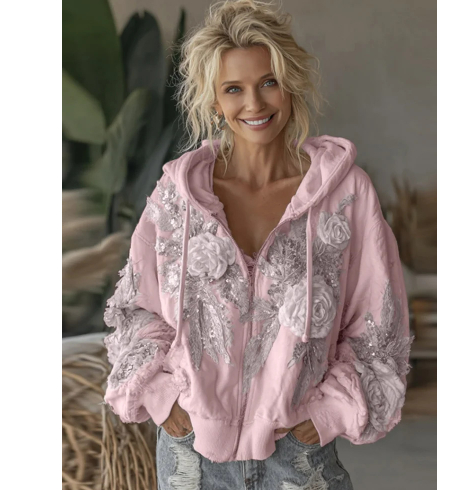 Womens Elegant Floral-Print Hooded Sweatshirt Top