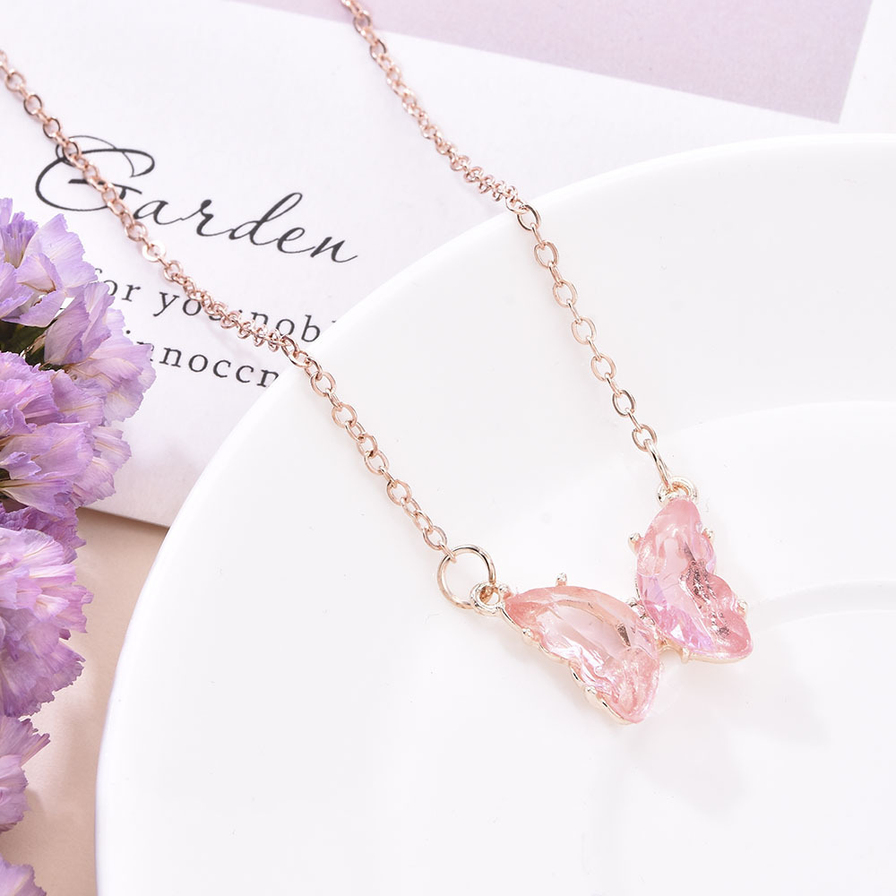 0 Review for Womens Glass Crystal Butterfly Pendant Necklace