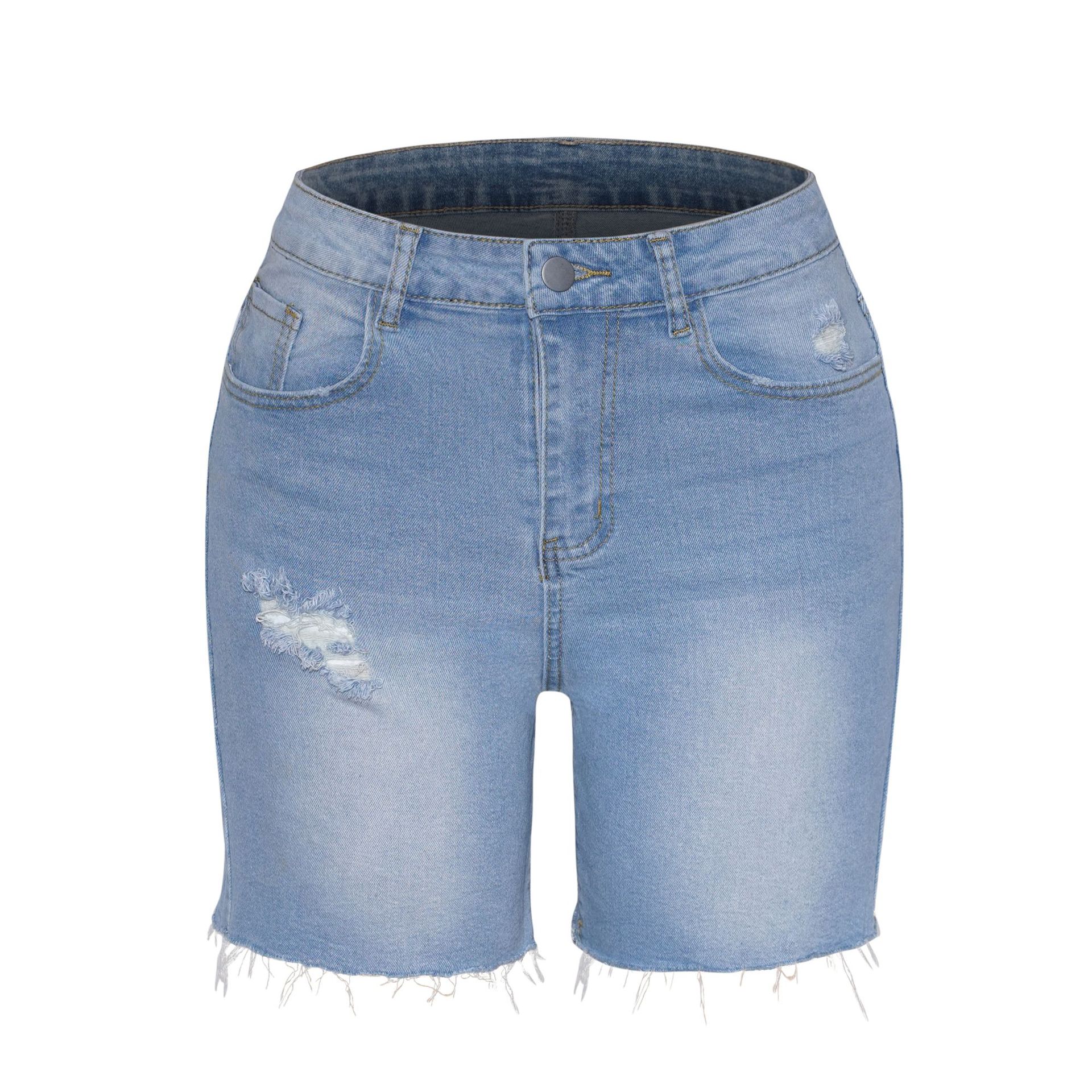 Womens High-Elastic Cropped Ripped Denim Shorts For Summer Street Style In Europe And The US