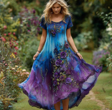 Womens Lightweight Printed Plus-size Loose-fitting Figure-flattering Maxi Dress