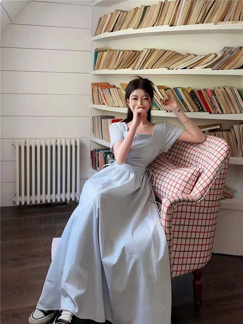 0 Review for Womens Long Hollowed-Out Patchwork Knitted Dress