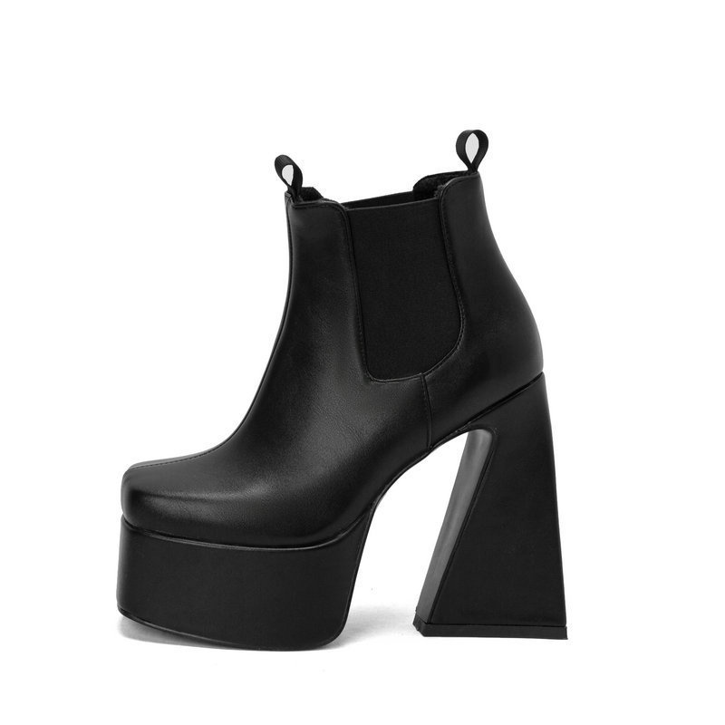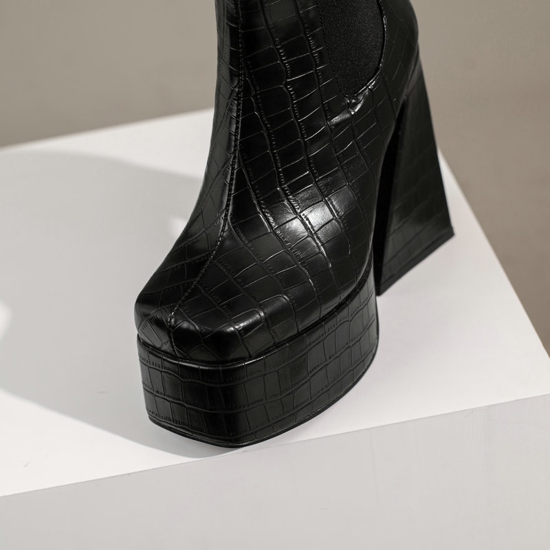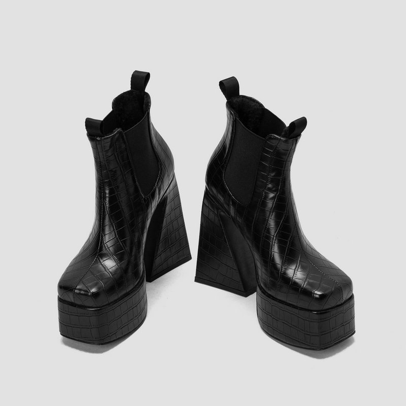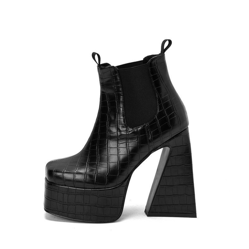 0 Review for Womens Patent Leather Square-toe Boots With Chunky Heels