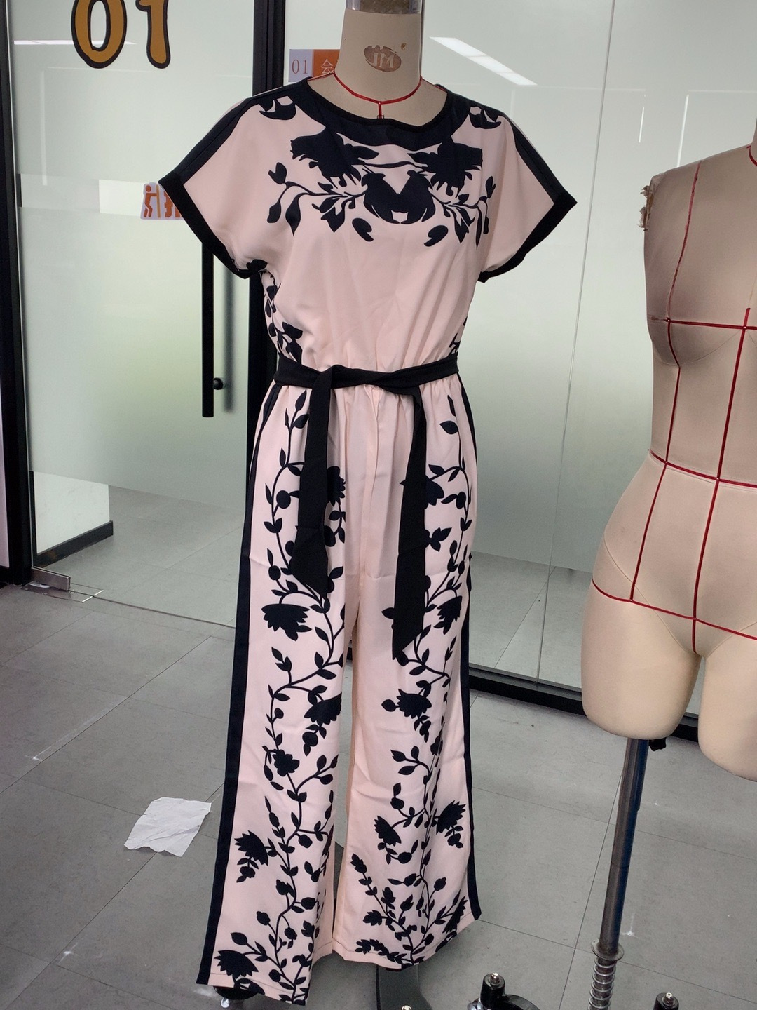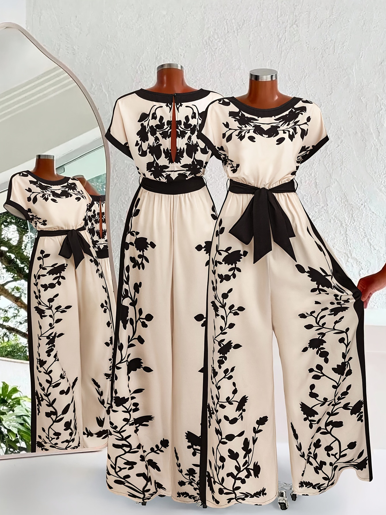 0 Review for Womens Printed Colorblock Tie-Waist Short-Sleeve Jumpsuit